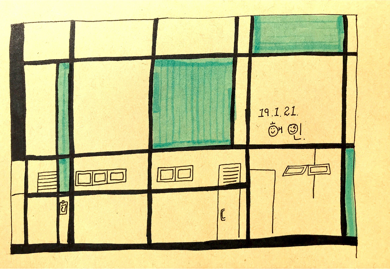 원래 건물의 느낌은 잘 살지 않지만 기억에서 사라지기 전에 느낌을 그림으로 남기다.