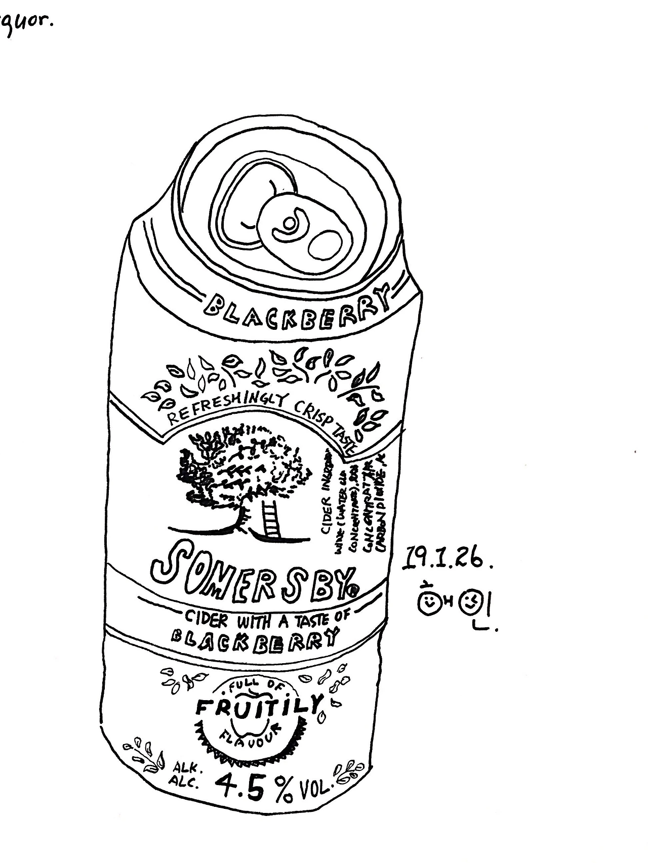 서머스비 애플 사이다를 마시다가 요즘에는 블랙베리 맛을 마신다