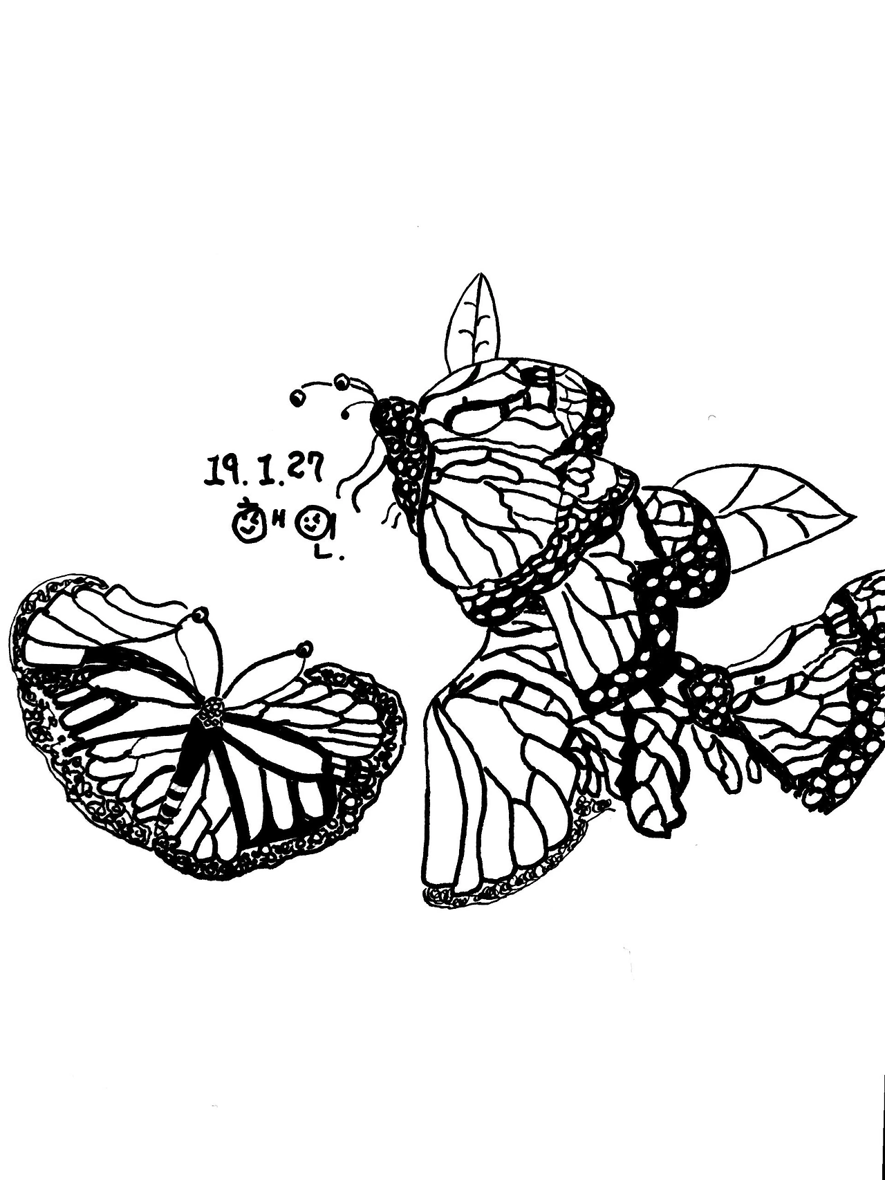 하지만 한 페이지에 가득한 나비를 그리려면 내 속도로는 하루에 다 그릴 수 없어 보였다