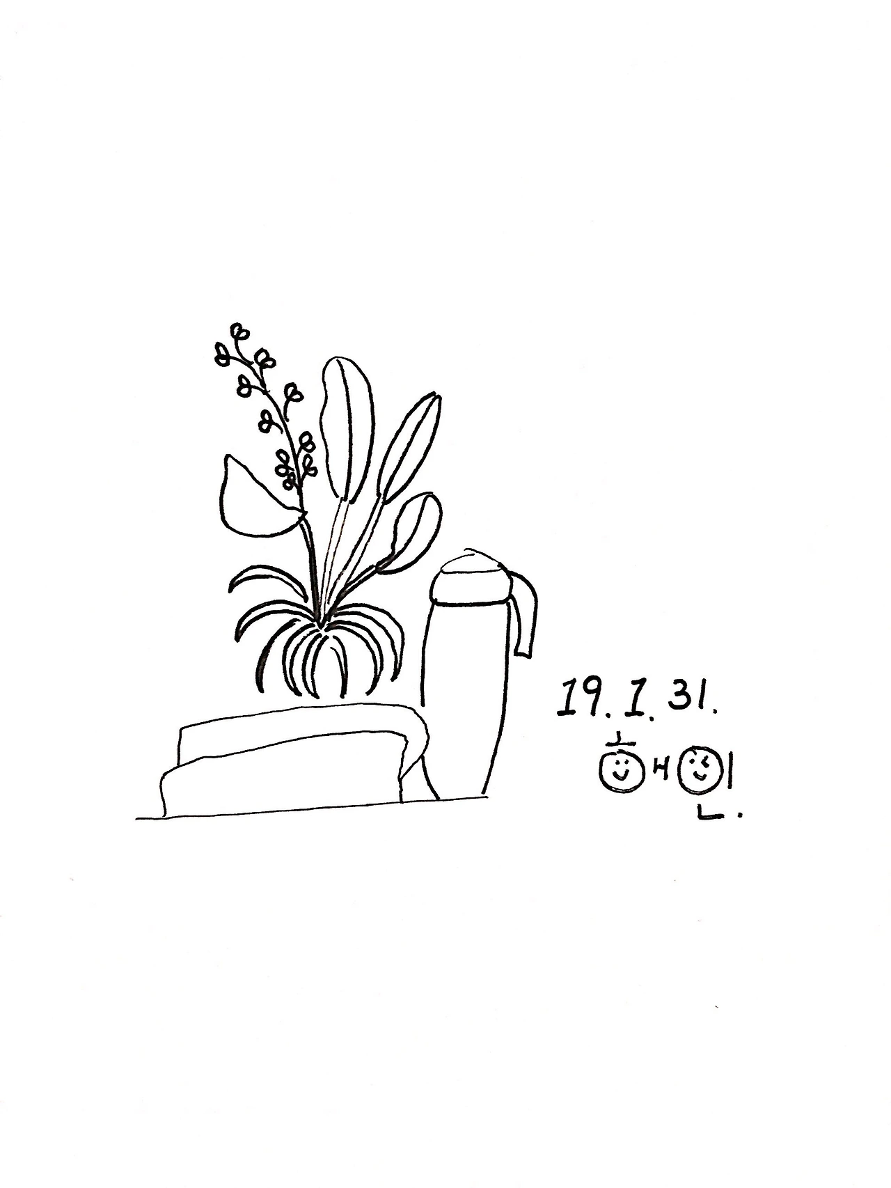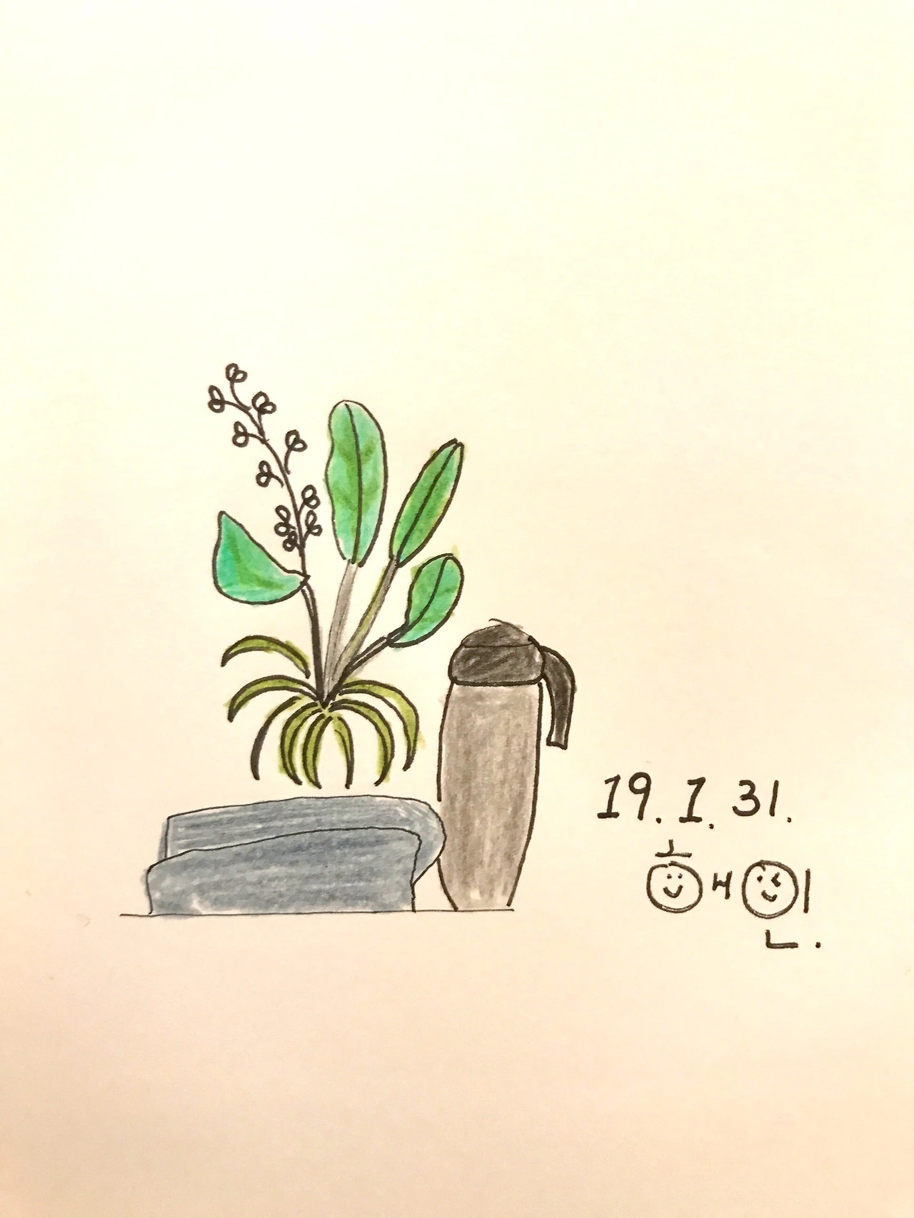 최대한 빨리 스케치하고 색연필로 얼른 마무리했다