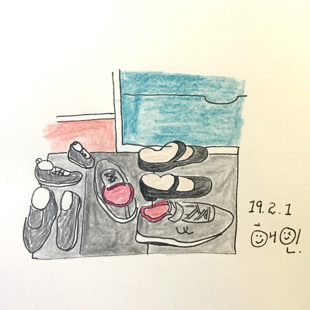 신발을 잘 정리해 놓았으면 좋으련만 아이들의 신발은 서로 다른 방향으로 놓여 있다.