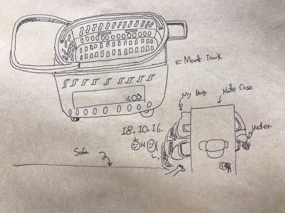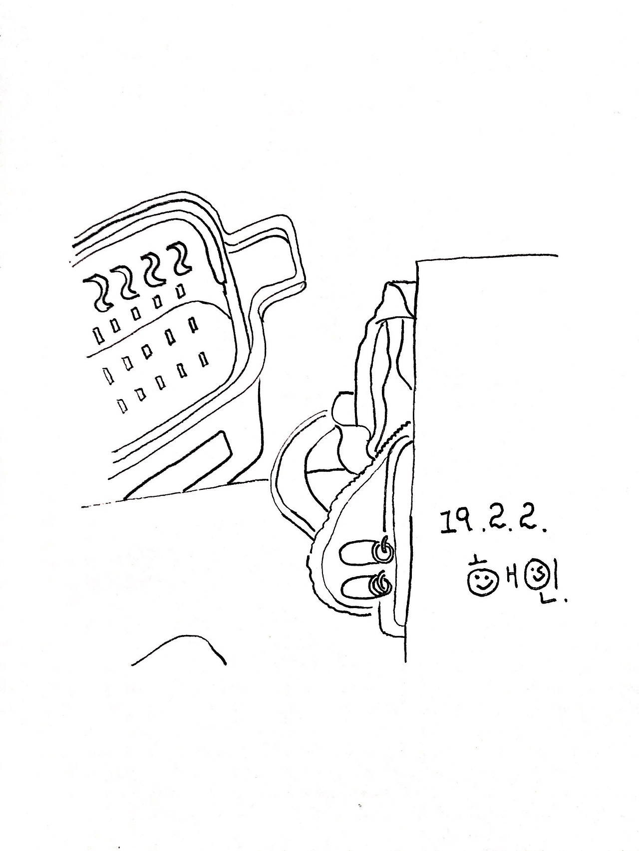 그림을 그리려고 찾아보았는데 노트가 없었다. 그 대신에 가방에 들어있던 누런 봉투와 볼펜을 꺼냈다.