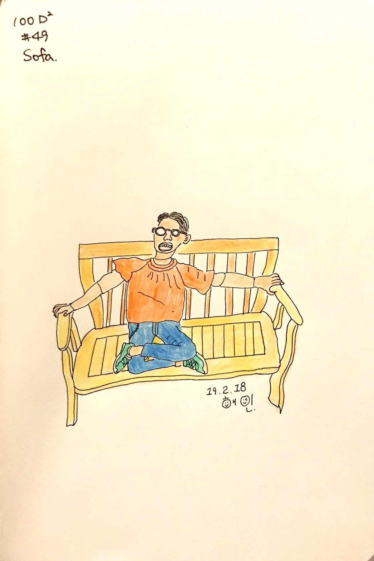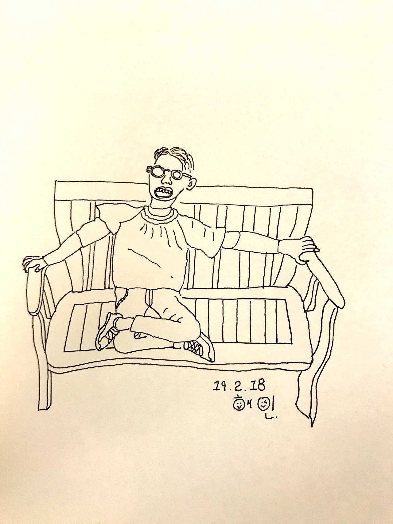 혼자 그 넓은 의자를 모두 차지하려 팔을 넓게 펼친다