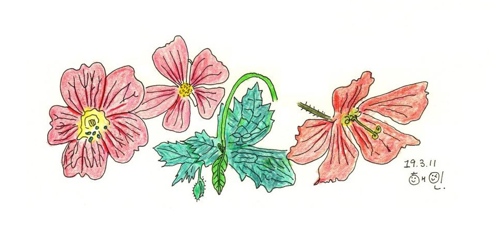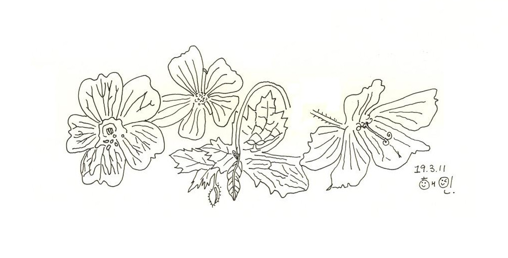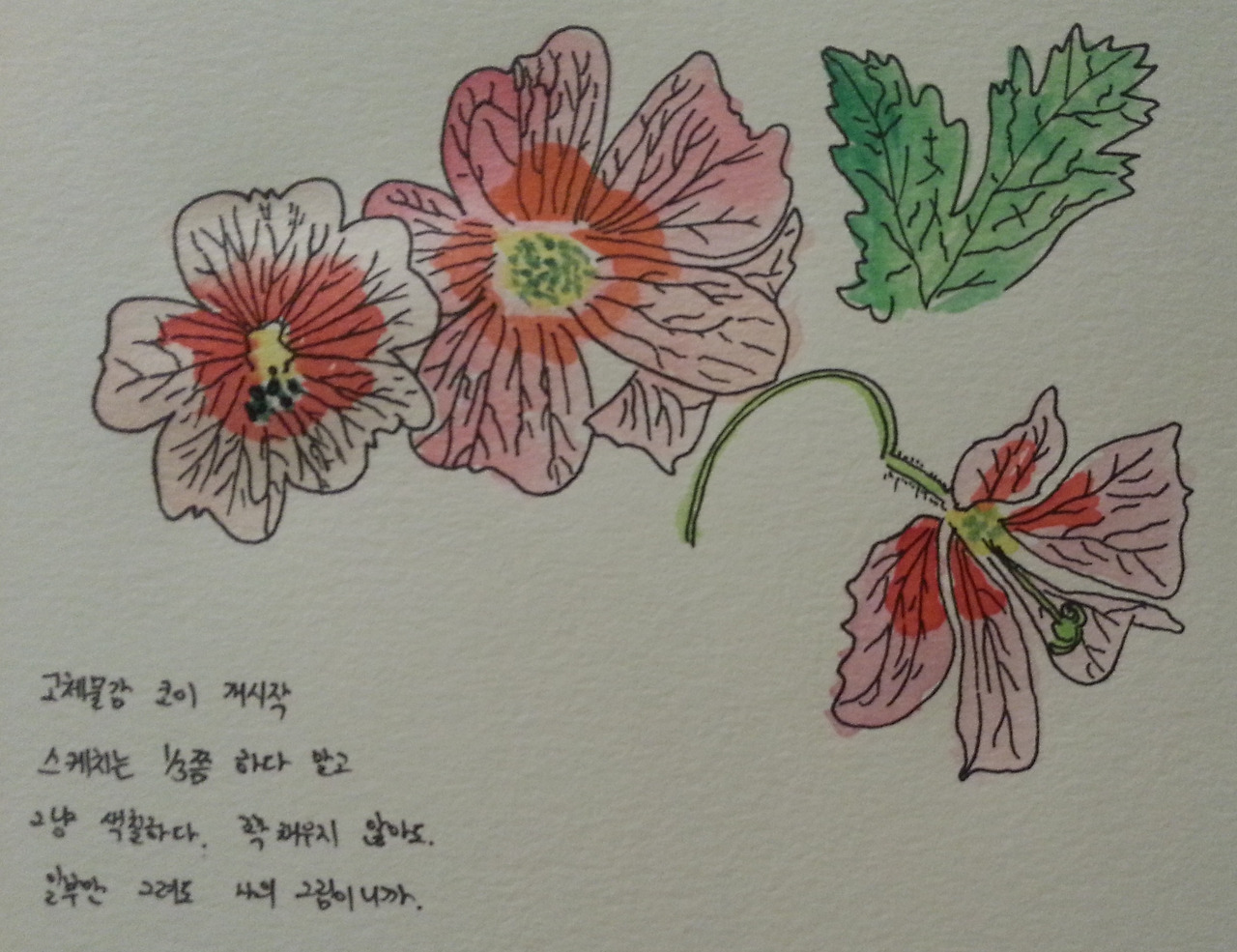 그나마 오른쪽 꽃은 실제는 더 어두운 색깔로 칠해졌는데 스캔을 하다 보니 조금 밝아졌다.