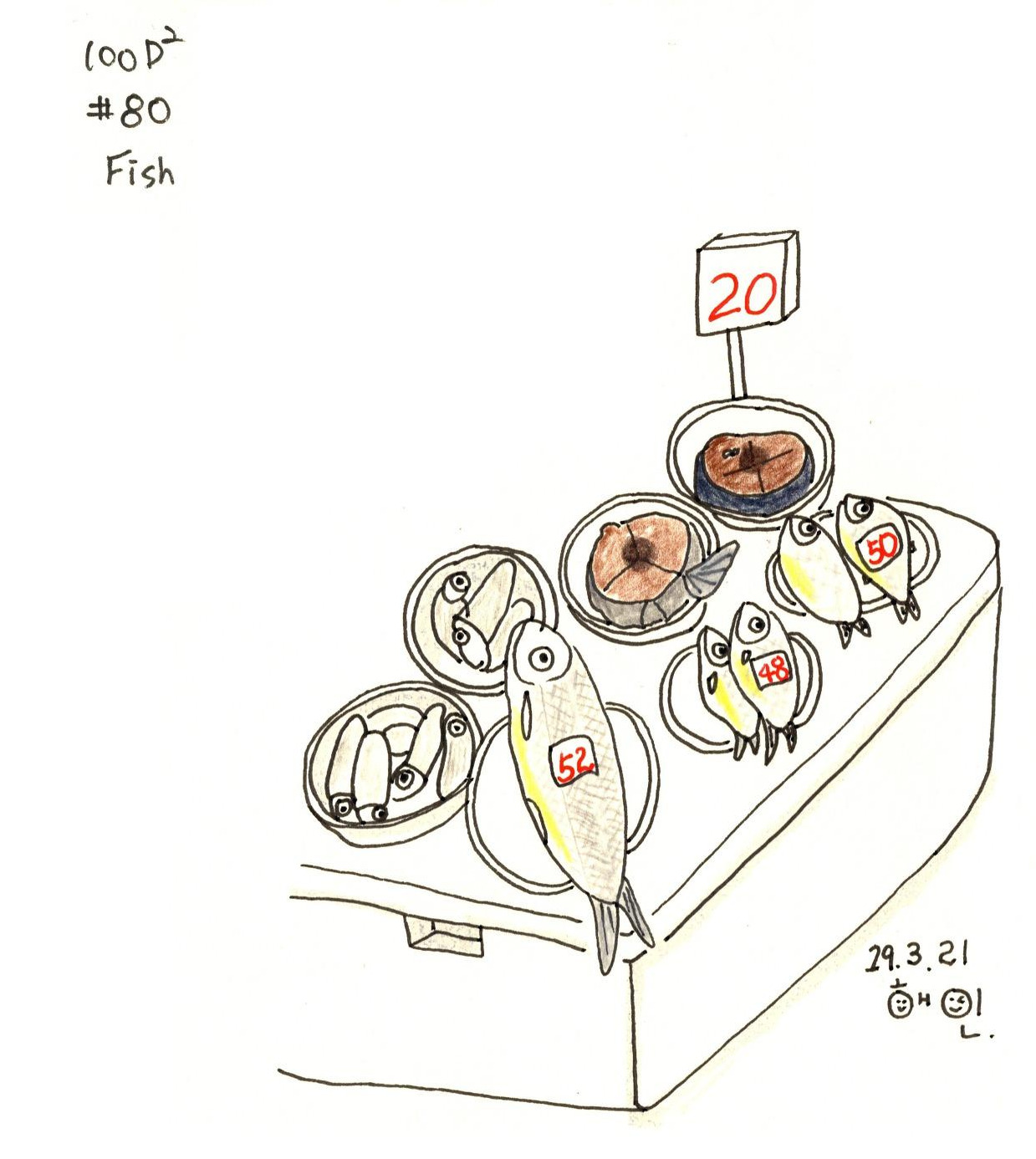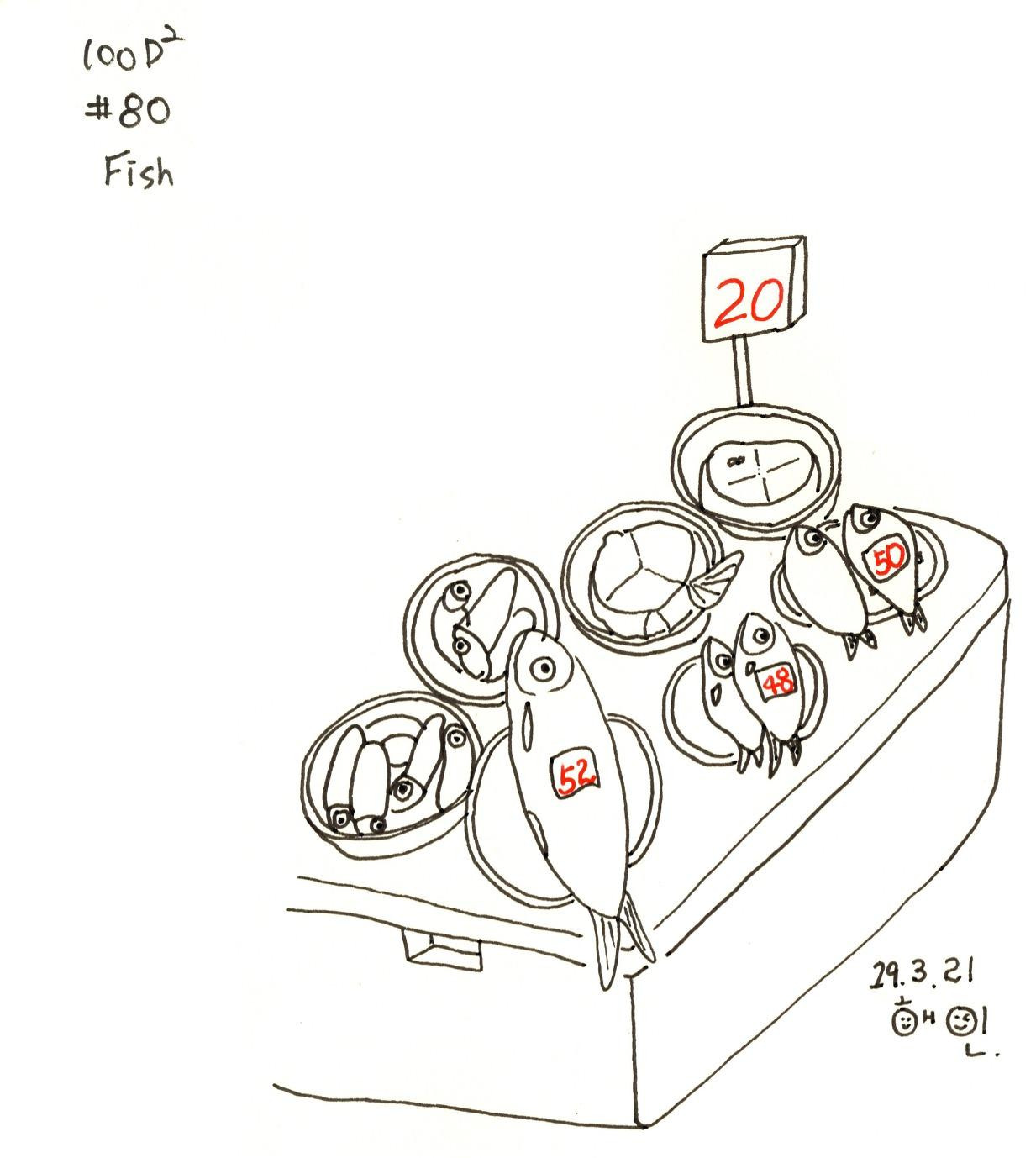 앞에 큼지막한 생선은 빛깔이 곱고 튼실해 보인다.