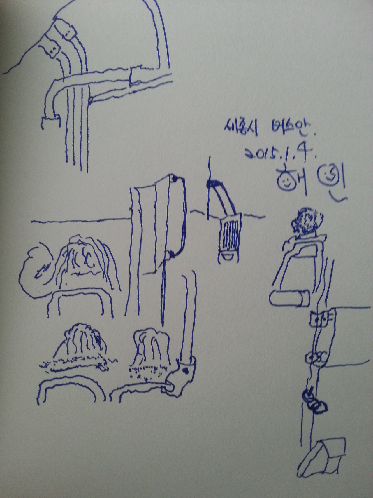 흔들리는 버스안에서 그림을 그리는 건 쉬운 일은 아니다