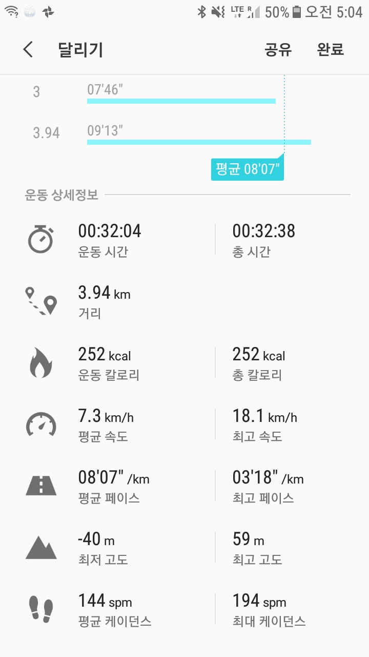 최고속도도 오히려 작심하고 뛰었을 때 보다 더 빠르게 나왔다