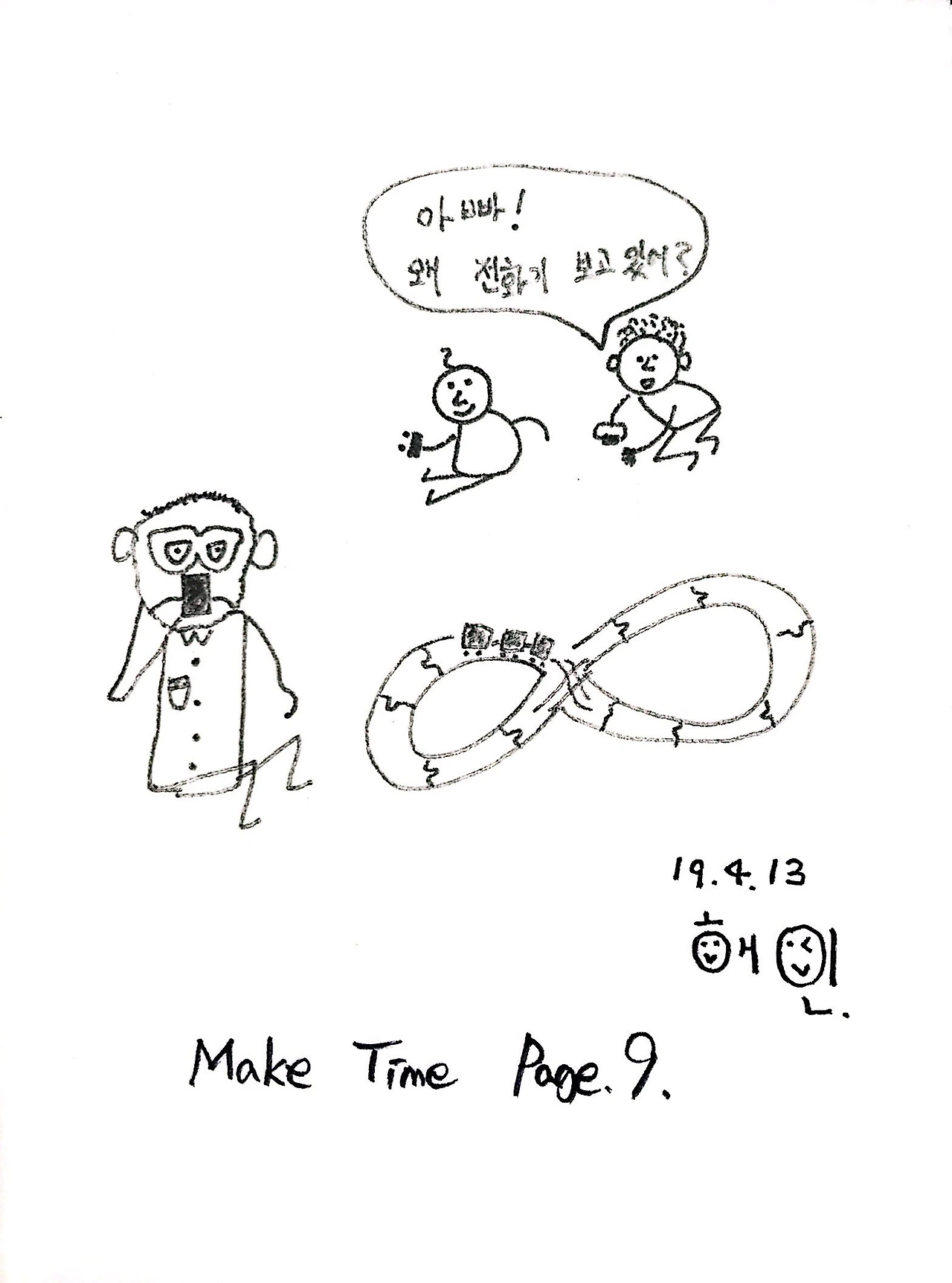 아이와 함께 있지만 눈은 스마트폰에 가 있는 나의 모습이 보였다