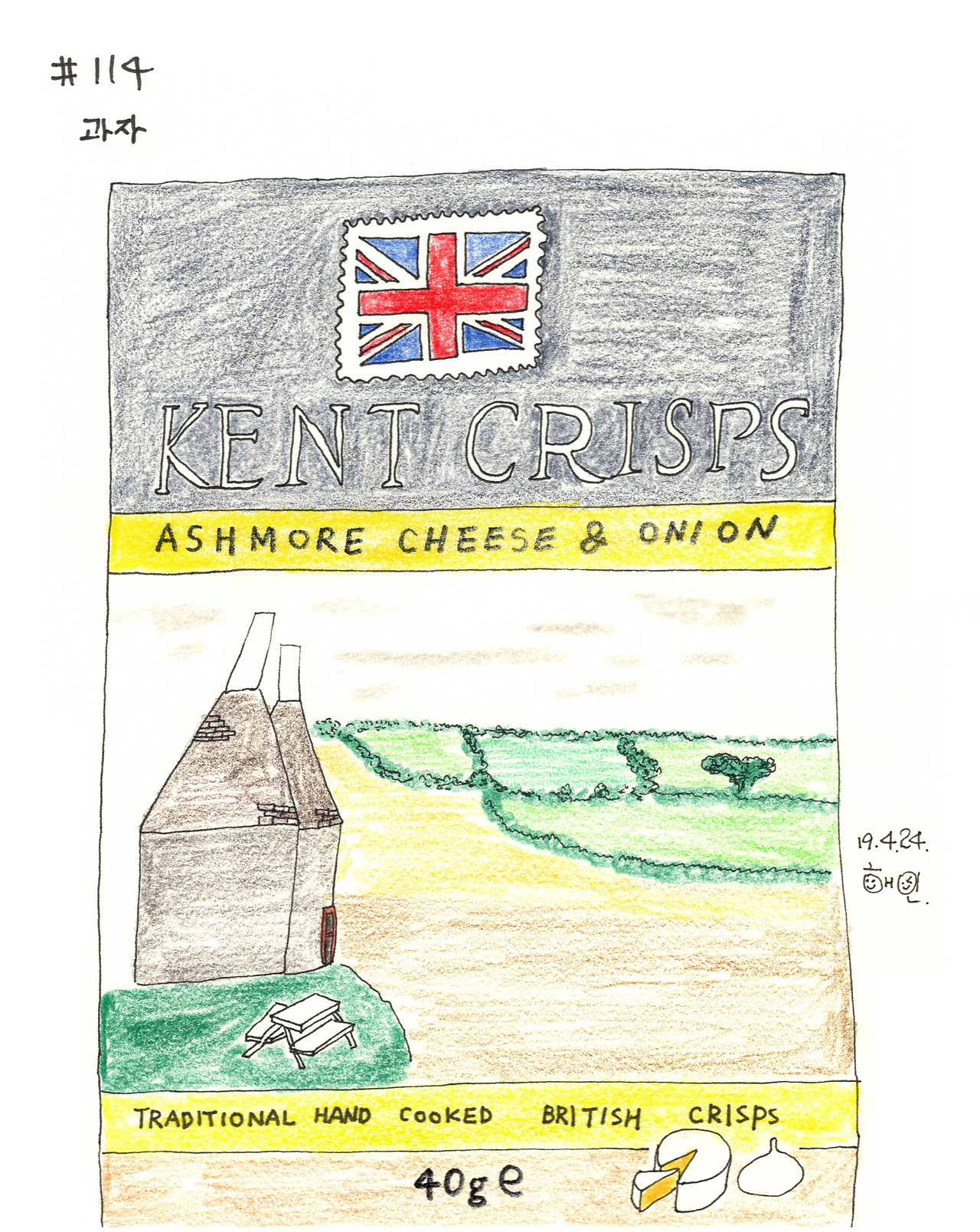 그러다 감자 과자 봉지에서 그 모양을 찾았다. 영국 전통 과자에서 옥수수 밭과 함께 원통 모양의 집이 보였다. 영국에서는 저렇게 생긴 곳에 곡식을 저장하는 것이었다.