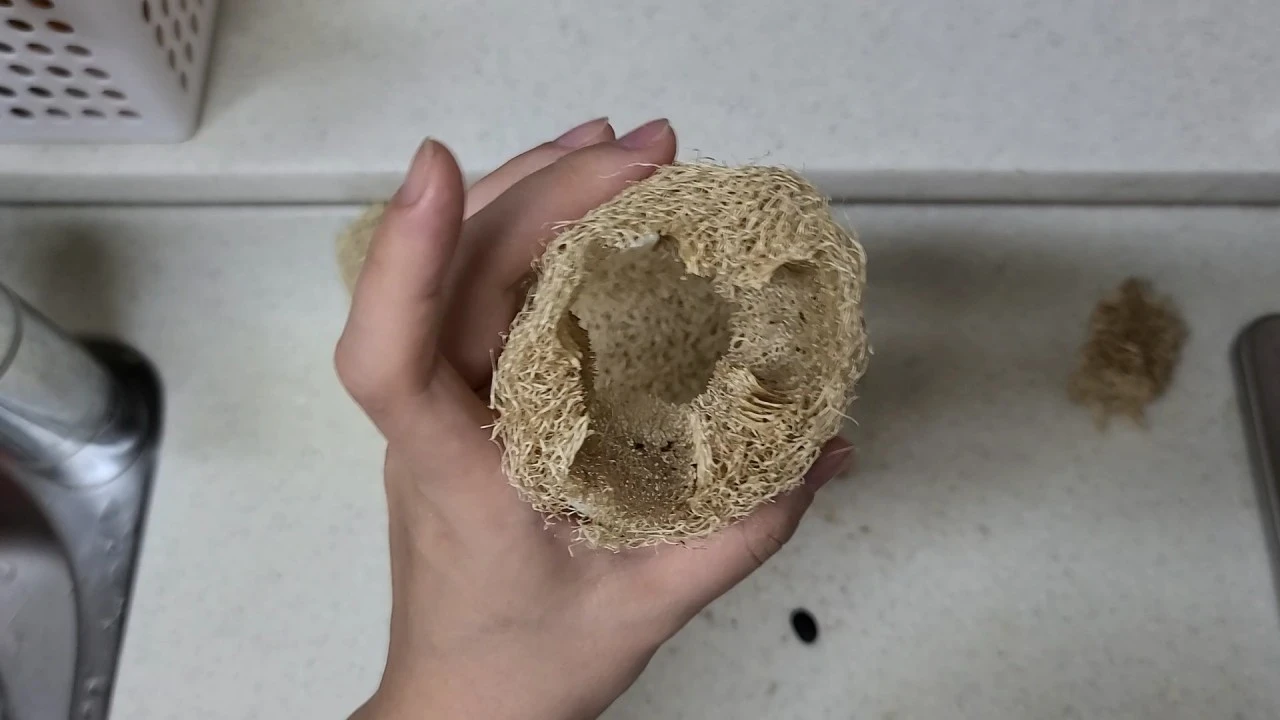 가공이 되지 않은 상태이기 때문에 직접 잘라서 써야 하는 번거로움은 있지만 그 번거로움은 내가 사용하기 좋게 자르는 것이기 때문에 천연수세미를 사용하는 내내 나에게 편리함을 주었다. 자르고 나서 부스러기가 생각보다 많이 생기긴 했지만 일반쓰레기가 아니기 때문에 쓰레기통이 아닌 베란다에서 키우는 화분에 거름이 되도록 뿌려주었다.