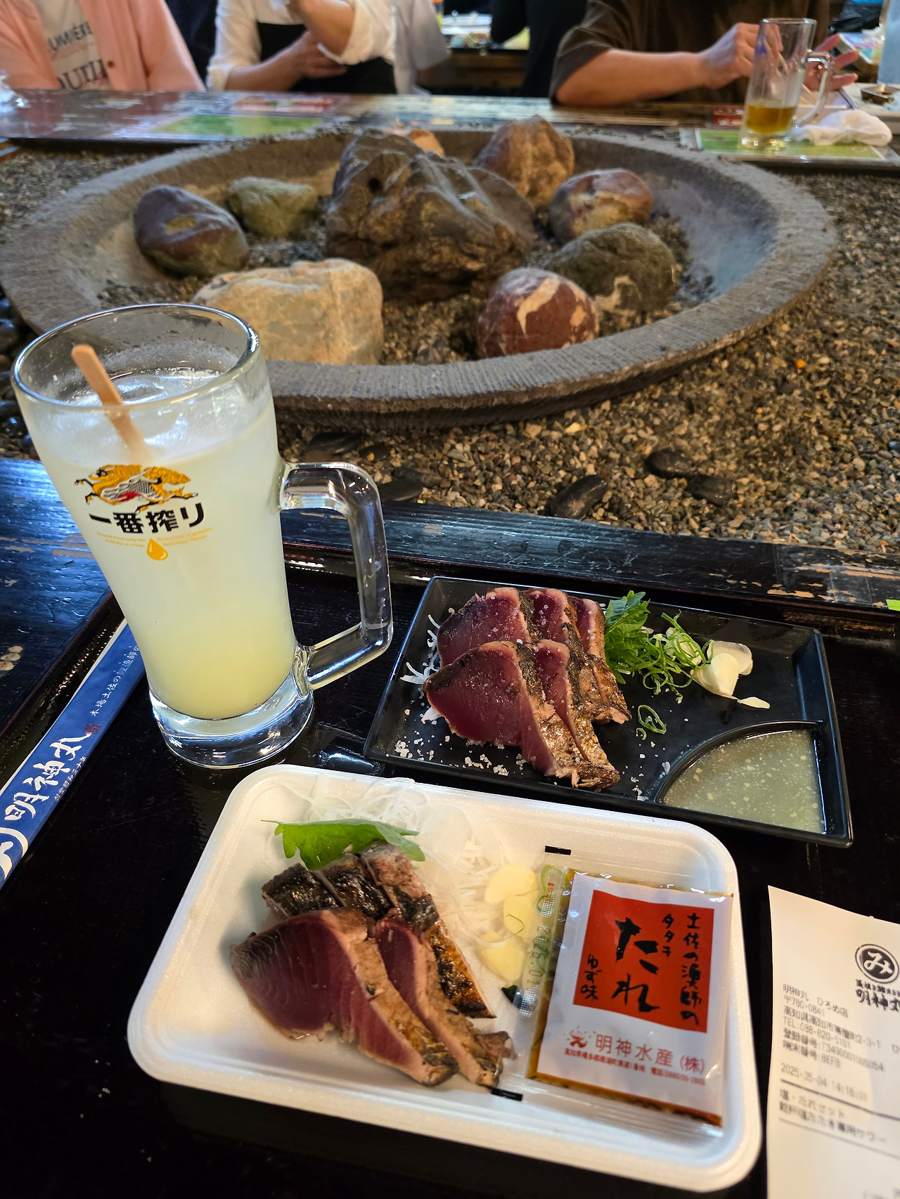 에도 시대에 한 방귀 뀌었던 '도사번'의 기개를 느낄 수 있는 고치성을 구경하고 나오면 '히로메 시장'으로 향하는게 필수 코스입니다. 대표 메뉴는 '카츠오 타다키' 입니다. 타다키는 고기나 생선의 겉면을 그슬리고 속은 싱싱함을 유지하는 요리법입니다. 한국말로는 겉바속촉이라고나 할까.. 사람들이 미어터지는 공간에서 볏짚 불쇼를 구경보다보면 어느새 타이 타타키가 눈 앞에 있습니다. '시오'와 '타레' 두 가지로 맛보는 카츠오 타다키, 분명 생선인데 왜 고기 맛이 나지?