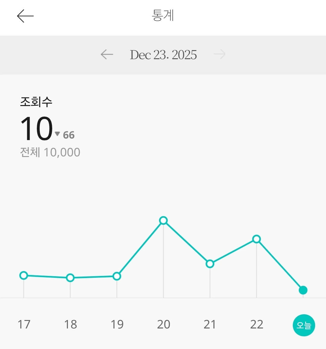 그 와중에 한가지 좋은 뉴스는 연재 2달 만에 누적 조회수 1만회를 달성했다는 것입니다. 다음 페이지에 메인으로 걸리기도 하는 등 이벤트도 있었지만 올릴때마다 꾸준히 조회수가 나와주고 있습니다.