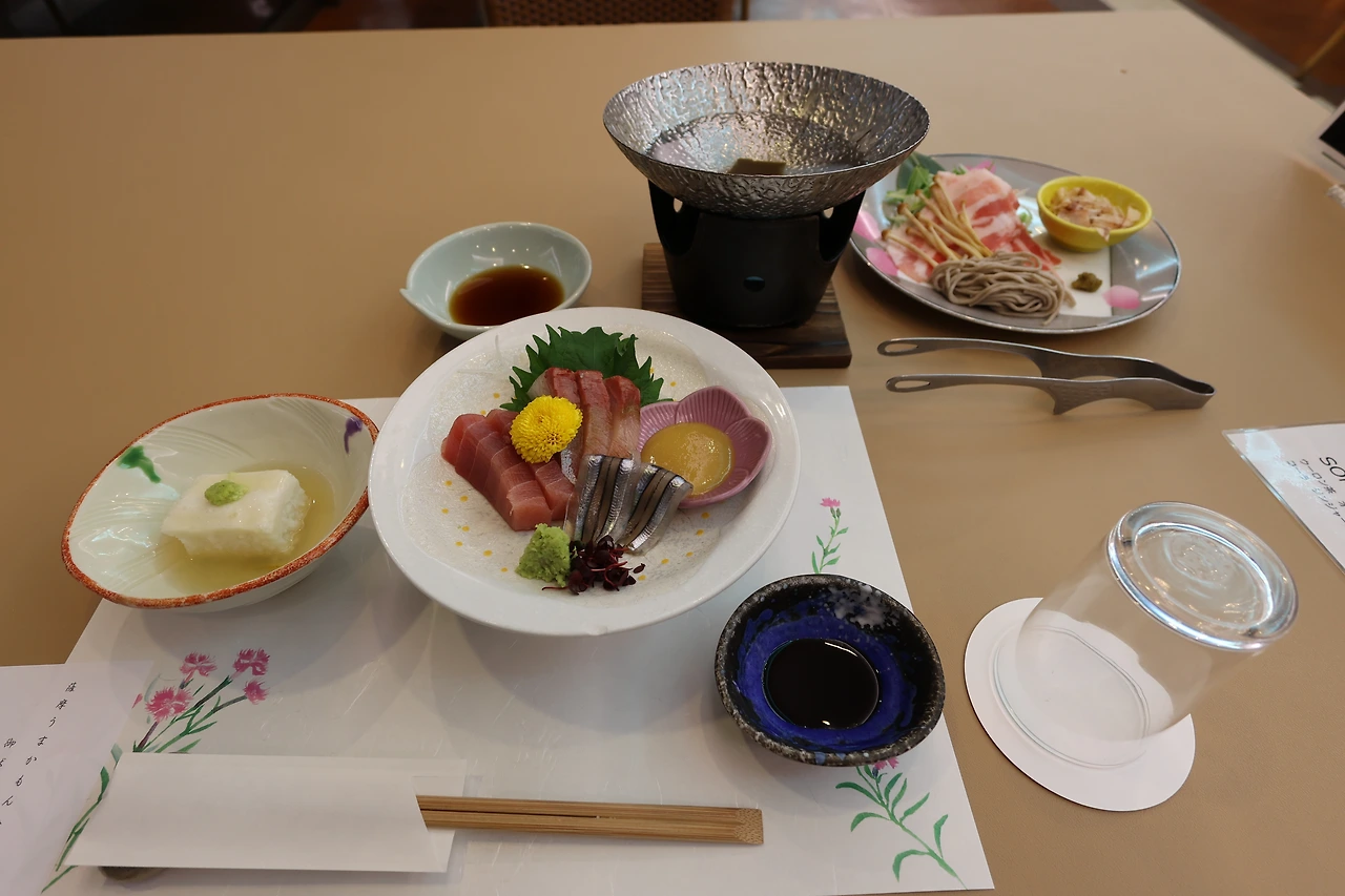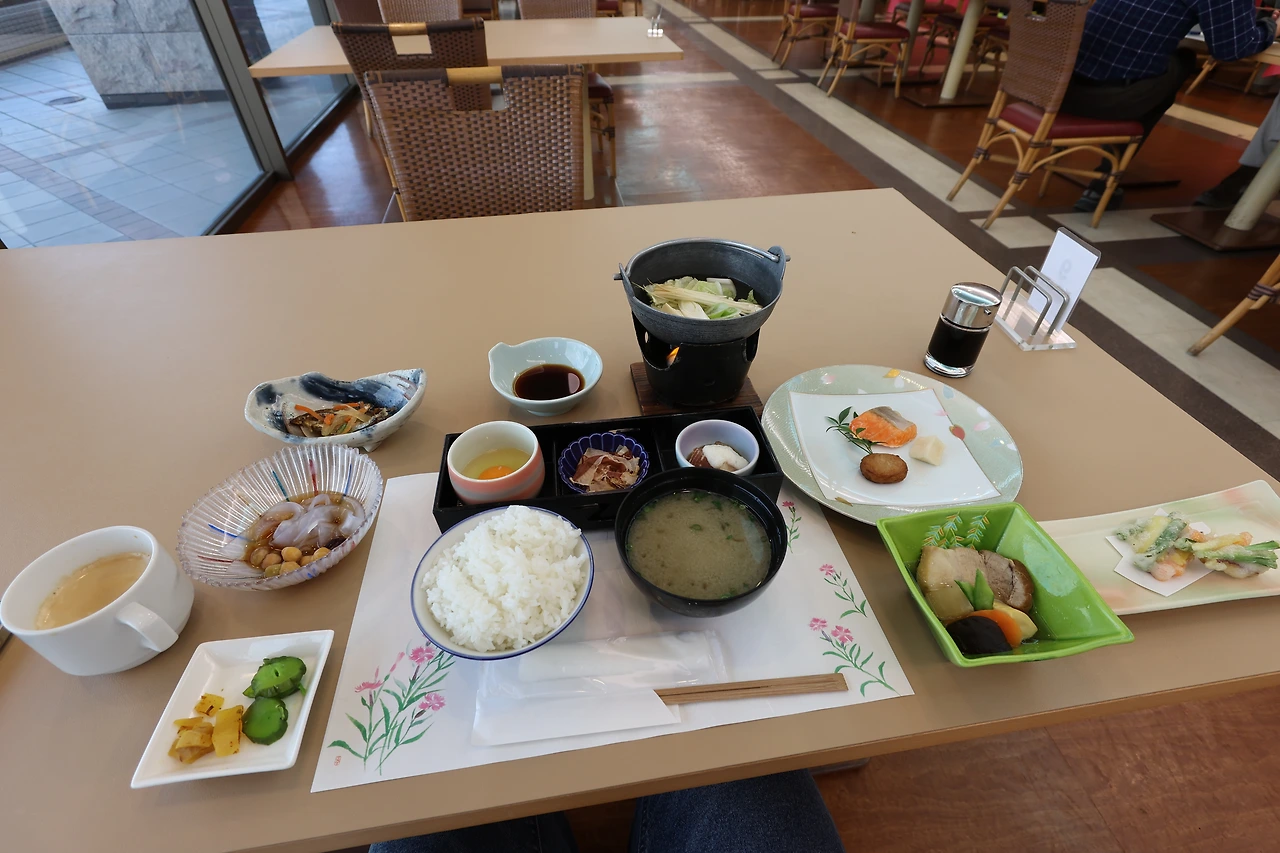 그렇게 버스를 타고 2바퀴를 돌면서 4번 정도를 내리면서 충분히 감상을 마치고, 전날 홧김에 예약한 호텔인 '국민숙사 레인보우 사쿠라지마'에 도착했습니다. 활화산인 사쿠라지마에 있는 '마그마 온천'이라는 이름에 대한 기대가 컸습니다. 숙소도 사쿠라지마 방향으로 예약을 했는데, 왠걸 창문으로 보이는 사쿠라지마의 대부분이 가려져 있어서 대실망했지만, 깔끔한 숙소라서 너무 마음에 들었습니다. 저녁 식사는 오후 여섯시, 아침 식사 여덟시반에 식사를 예약했습니다. 사실 기대했던 마그마 온천과 가이세키도 특별함을 느끼지는 못했지만, 그래도 이 작은 섬에서 이 정도의 퀄리티의 음식과 시설을 준비한다는게 쉽지 않을 것이라는 생각을 하면서 충분히 좋은 경험이라고 생각하며 잠이 들었습니다.