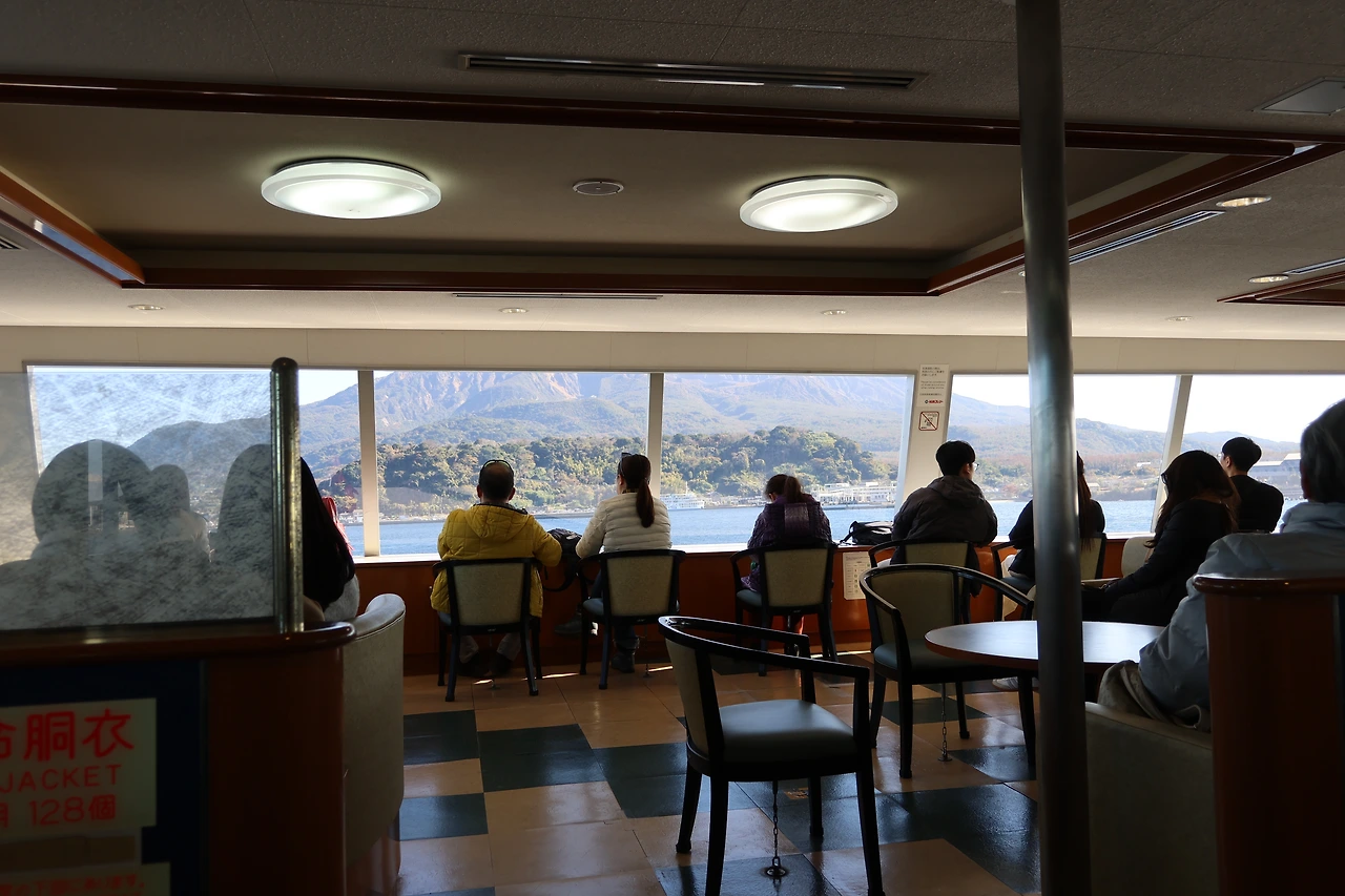 그렇게 정말 마지막으로 사쿠라지마를 떠나기전 식사를 하고 출발하고 싶었지만 햄버거집, 라멘집, 일식집 등등 모두 닫혀있어서 식사는 하지 못하고 돌아오는 페리 안에서 우동을 먹었습니다. 페리로 들어가자마자 사람들이 우동집에서 줄서서 시키는 모습을 볼 수 있었는데, 주문한지 1분이 만에 나오는 우동인데 퀄리티가 상당해서 깜짝 놀랐습니다. 따뜻한 우동으로 몸을 녹이고 가고시마항에 도착하면서 이번 여행을 마무리하였습니다. 비지터센터에서도 쓰여져 있듯이 사쿠라지마 대분화는 언젠가는 꼭 일어날 일이지만, 잘 대비를 하여 모든 사람이 안전했으면 좋겠습니다.