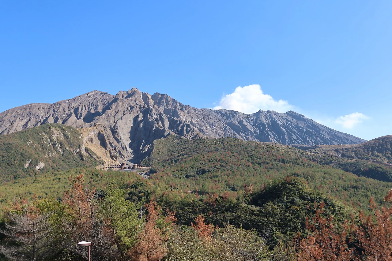 그렇게 한번 더 출발하고 도착한 세번째 포인트 '아리무라 용암 전망대'입니다. 히노유라 전망대에서는 녹음을 볼 수 있고, 그 반대편에서는 화산재로 덮인 짜글한 모습을 볼 수 있다면, 이곳에서는 양쪽이 그라데이션된 모습을 볼 수 있습니다. 왼쪽으로는 푸른 녹음, 그리고 중간에는 생명이 있지만 화산재로 덮혀 시들어 죽은 듯한 색깔, 오른쪽은 화산잿빛으로 그라데이션을 볼 수 있었는데 너무나 신기한 광경입니다.