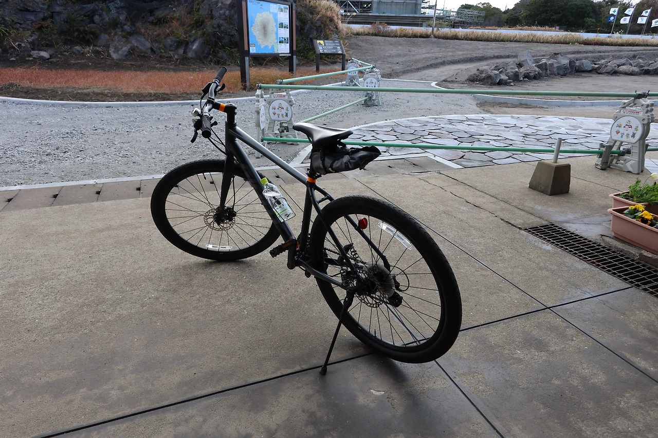 다음날 아침 비지터 센터에서 다시 방문하여 자전거를 빌렸습니다. 전날에는 유노히라 전망대를 경로로하는 작은 원을 그리면서 돌았다면, 오늘은 자전거로 섬 전체를 일주하려고 합니다. 자전거 일주에 4시간 정도 걸리고, 힘들다고는 들었지만 공식적인 자전거 루트도 있기 때문에 크게 걱정하지 않았습니다만 이게 큰 오산이었다는 것을 이내 깨닫게 됩니다. 언덕도 너무 많고, 자전거 길이 따로 없이 일반 차도를 달려야하는 상황도 많았습니다. 한국에서는 추월하기 전에 앞에 조심하라고 클락션을 울리는 경우가 많은데 일본은 클락션을 잘 울리지 않고 스텔스 비행기처럼 조용하게 추월하다보니 놀라기 쉽고 더 무서운 느낌을 받았습니다. 달리면서부득이 길을 반대편으로 넘어갈 때에는 무조건 내려서 건너가야겠다고 원칙을 세웠습니다.
