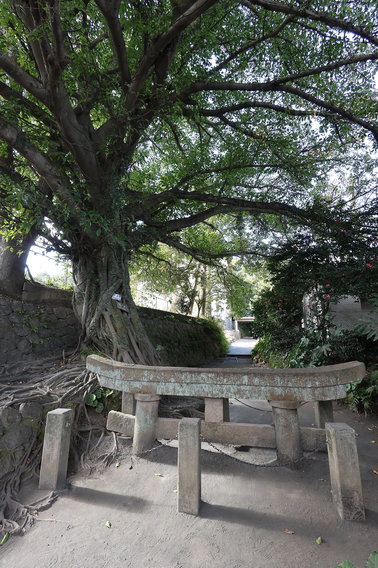 그렇게 약 두번째 포인트인 '쿠로카미 토리이'에 도착했습니다. 풀 네임으로는 '쿠로카미 매몰 토리이' 입니다. 사실 사진으로만 봤을 때에는 "에이, 윗부분만 올려놓고 거짓말하는거 아니야?" 하는 의심도 들었지만 실제 눈으로 확인하니 자연의 무서움이 느껴졌습니다. 기존 3m 높이의 토리이인데 1914년 대분화로 인해 하루만에 2m가 화산재로 매몰되었다고 합니다. 그래서 토리이의 윗부분 1m 정도만 남아있는 끔찍한 모습으로 남아있습니다. 바로 옆 땅에서 뿌리를 내려 자란 나무를 보면서, 화산으로 매몰된 종말과 나무라는 생명의 시작을 동시에 느낄 수 있는 신비로운 장소였다고 생각했습니다.
