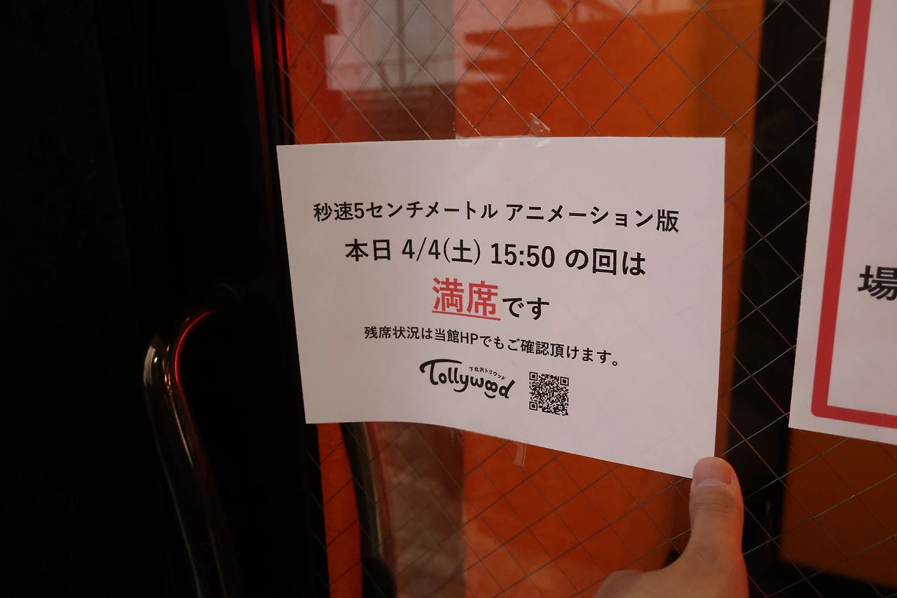 카레의 성지, 힙한 빈티지 샵 그리고 철로거리 (센로가이)로 잘 알려진 시모키타자와에 52석짜리 미니시어터가 있다. <초속 5센치미터> 재상영 관람을 위해 이 영화관을 찾은 이유는 신카이 마코토 감독의 데뷔작이 상영된 성지이기 때문이다. 내가 간 재상영 첫날인 4월 7일에도 만석이었다. 만석이된 영화관에서 영화를 보는게 정말 얼마만인지 모르겠다. 어렸을때 봤을때보다 지금 봤을때 훨씬 더 깊은 여운이 있었다.