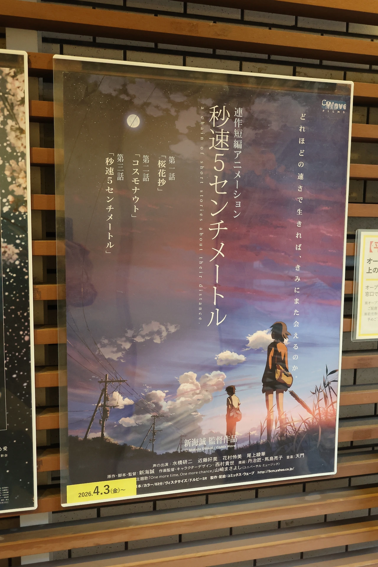 <초속 5센티미터>는 왜 재상영을 하는가, 바로 영화의 주요한 소재가 벚꽃으로 초속 5센티미터가 곧 벚꽃이 떨어지는 속도를 나타낸다. 매년 벚꽃이 북상하는 기간에 맞춰 서일본 지역에서는 3월 20일부터, 동쪽에서는 3월 27일부터 2주간 특별 상영을 한다. 벚꽃 개화 시기가 북상하는 텀을 두고 재상영을 하는게 정말 재미있는 컨셉이라는 생각이든다.