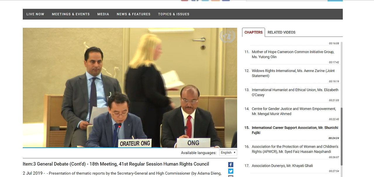 이러한 이 위원의 반론 취지를 요약하자면, 이번 유엔 인권이사회 발표에 일본의 극우 인사 '후지키 슌이치'씨가 여비를 대거나 자금을 지불한 등의 사실은 없으며 <국제경력지원협회(ICSA)>는 유엔 경제이사회에 조언(advice) 할 수 있는 NGO라는 것이다.
