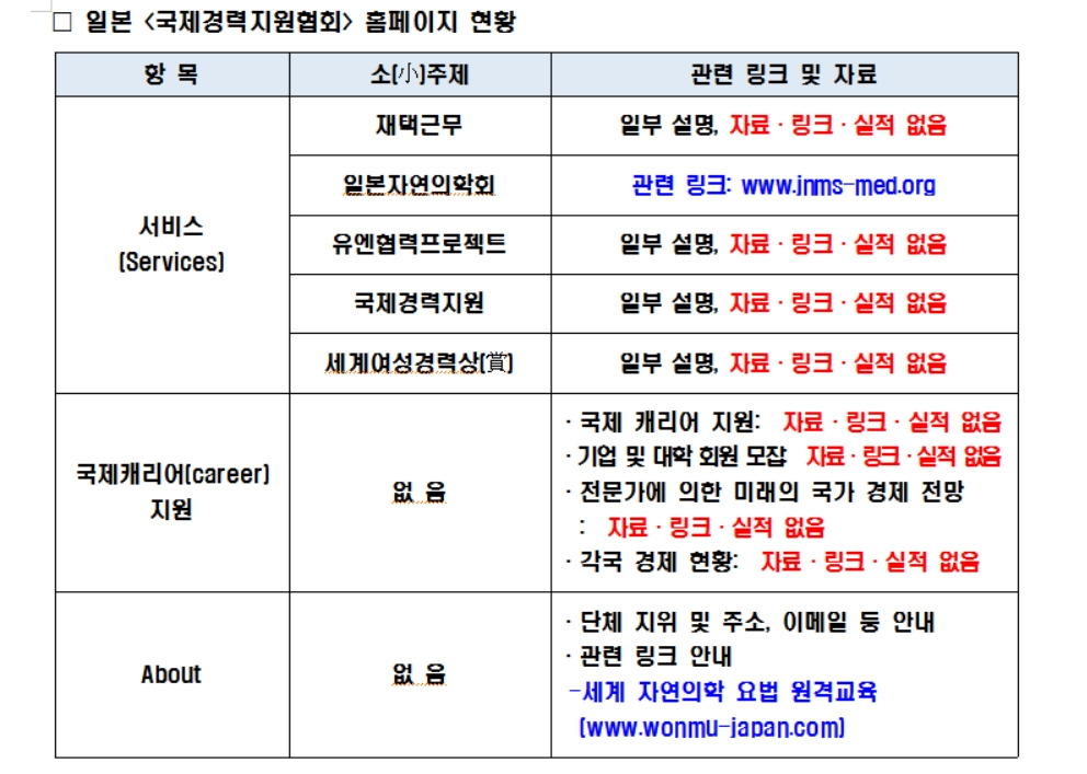 이에 자연의학과 관련된 2차 홈페이지의 연혁 등을 확인한 결과 <국제경력지원협회>는 '일본자연의학회'를 '경력형성의 한 부문'으로 활용하고 있었으며 2017년 10월 <국제경력지원협회>가 '일본자연의학회'를 정식 합병한 사실을 알 수 있었다. 즉, <국제경력지원협회>는 자신들의 정체성인 사회활동 부문의 NGO라는 정체성과 활동 영역을 이러한 '일본자연의학회'를 통한 활동들에서 찾고 이를 대중에 공개하고 있었던 것으로 추정해볼 수 있다.