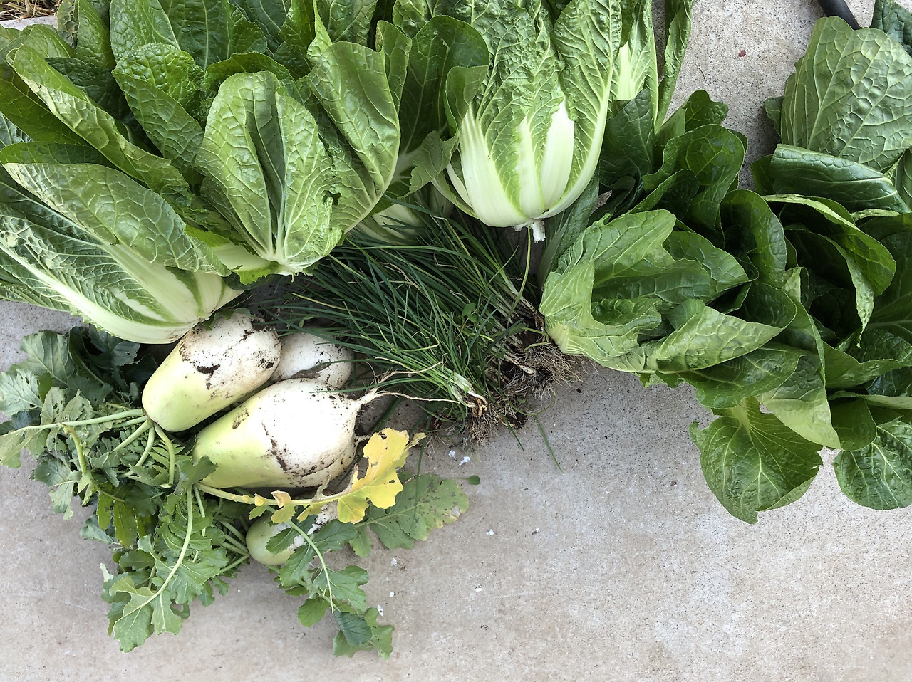토요일 진료를 마치고 집에 오자마자, 칼을 들고 텃밭으로 들어갔다. 배추의 밑동을 자르고 상한 겉이파리들을 떼어냈다. 김장용으로 쓸 만한 배추들을 모으니 딱 열 포기였다. 칼집을 내어 자르기도 민망할 정도로 작고, 속도 차지 않았다. 칼집 두 번으로 네 조각을 만든 게 딱 한 포기였고, 나머지는 칼집 한 번으로 두 조각 엉성하게 만들어졌다. 무는 가장 큰 것이 주먹 두 개 정도였다. 쓸만한 것들을 골라 뽑으니 다섯 개 정도였다. 뿌리와 무청을 자르고 물로 씻으니 겉모습이 뽀얗고 귀여웠다. 쪽파는 잡초들과 함께 뒤섞여 간신히 키를 키운 것들 중, 손질하기 힘들지 않을 정도로 가늘지 않은 것들을 골라 뽑았다. 솎아내듯 골라 뽑은 것들이 줄기를 잡아 두 줌 정도였다. 가늘지 않은 것으로 골라 뽑았지만, 손질하기엔 무척 가늘어서 뿌리를 자르고 겉줄기를 벗기는데 힘이 없으니 밑동이 뚝뚝 끊어졌다. 텃밭에서 기른 것들을 최대한 활용하여 김장을 하자는 다짐에 필요한 것들을 모으고 다듬었다. 다듬은 것들을 모아놓고 보니, 내가 보아도 김장재료로 쓰기에는 많이 부실해 보였다. 포기를 나눈 배추에는 미리 소금을 쳐 두었다.