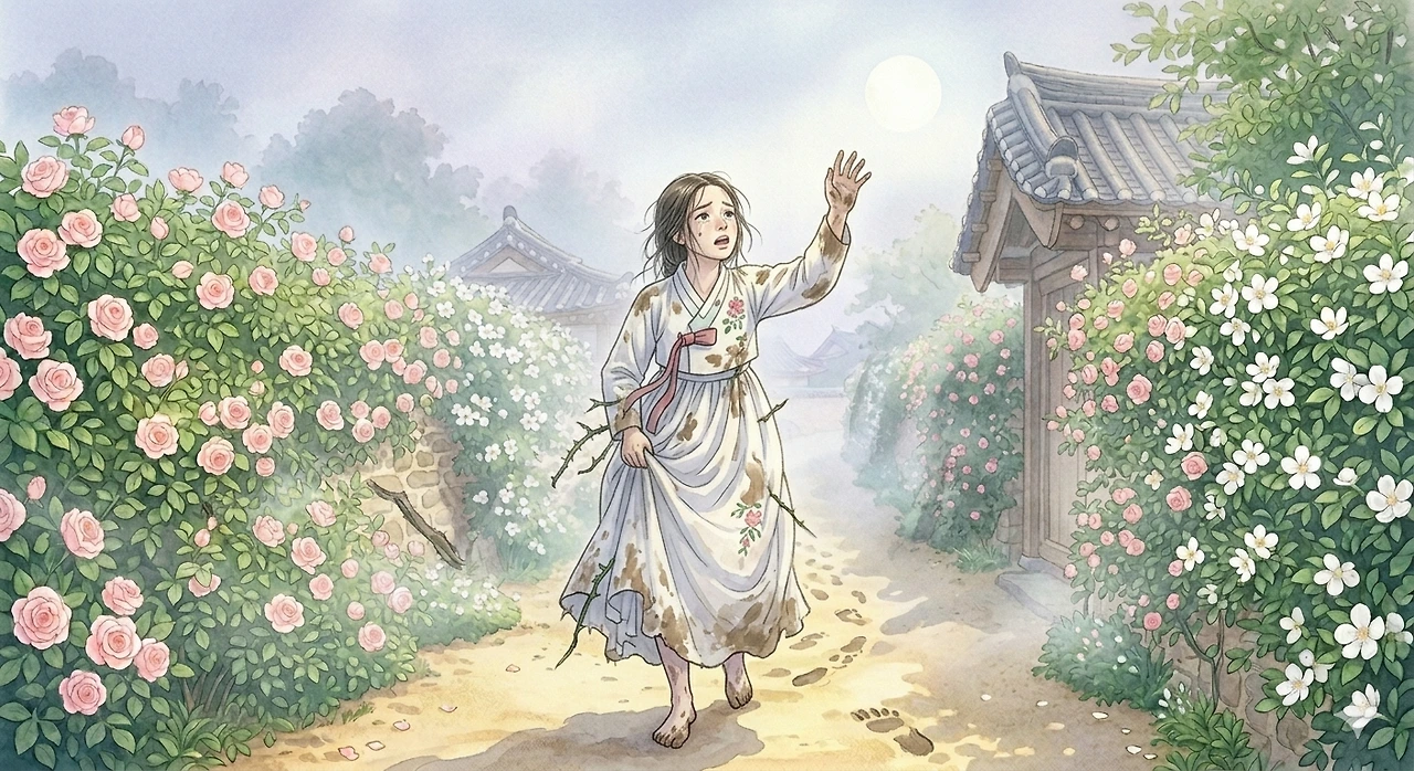 정성껏 빗어 넘겼던 머리카락이 바람에 흩어지고, 정갈한 소슬 한복에 흙먼지가 잔뜩 묻어나는 것도 모른 채 마을 곳곳을 헤매었습니다.