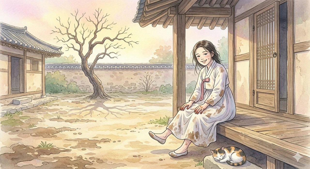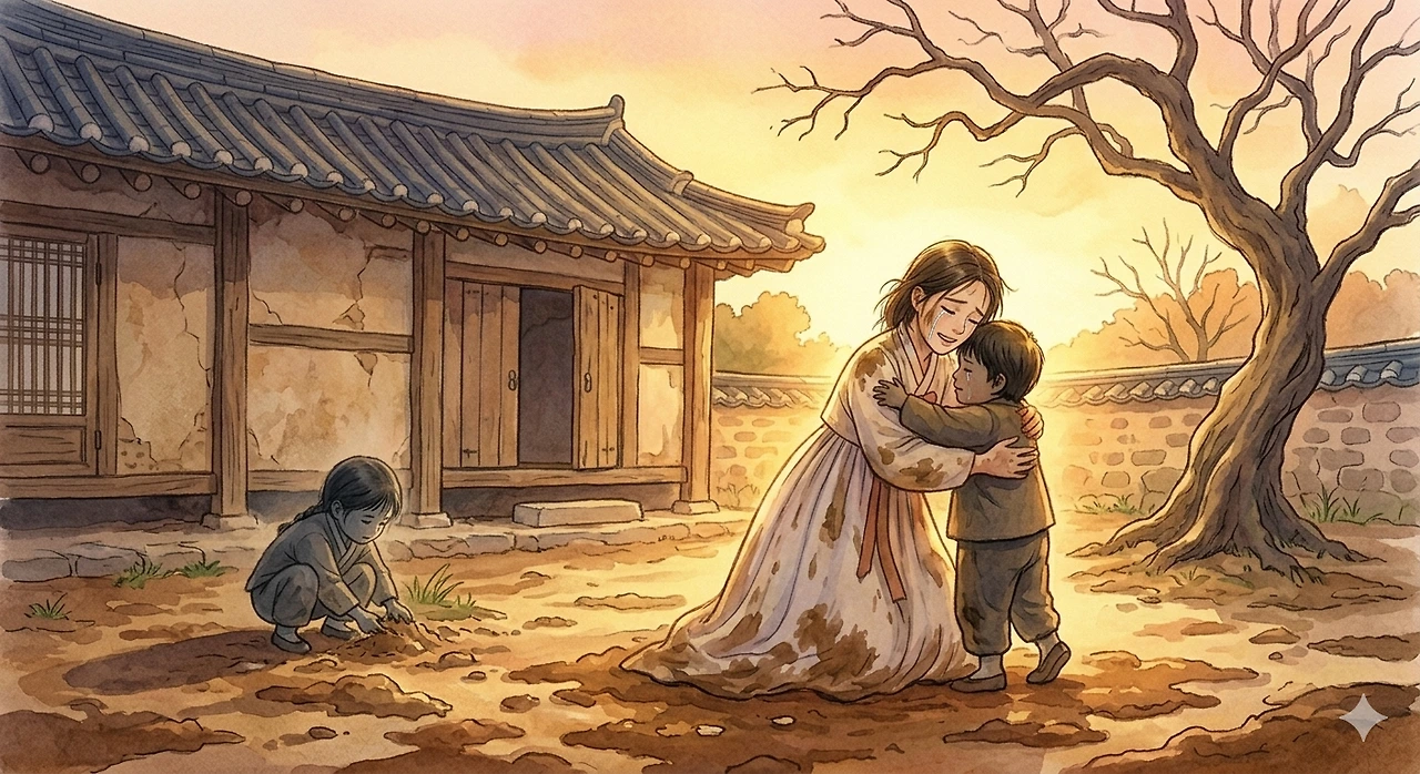 동이가 된 연이는 이제 배나무 아래 누워 가만히 숨을 고릅니다. 그녀의 손톱 밑에는 지워지지 않는 붉은 황토 흙이 훈장처럼 진하게 배어 있습니다.