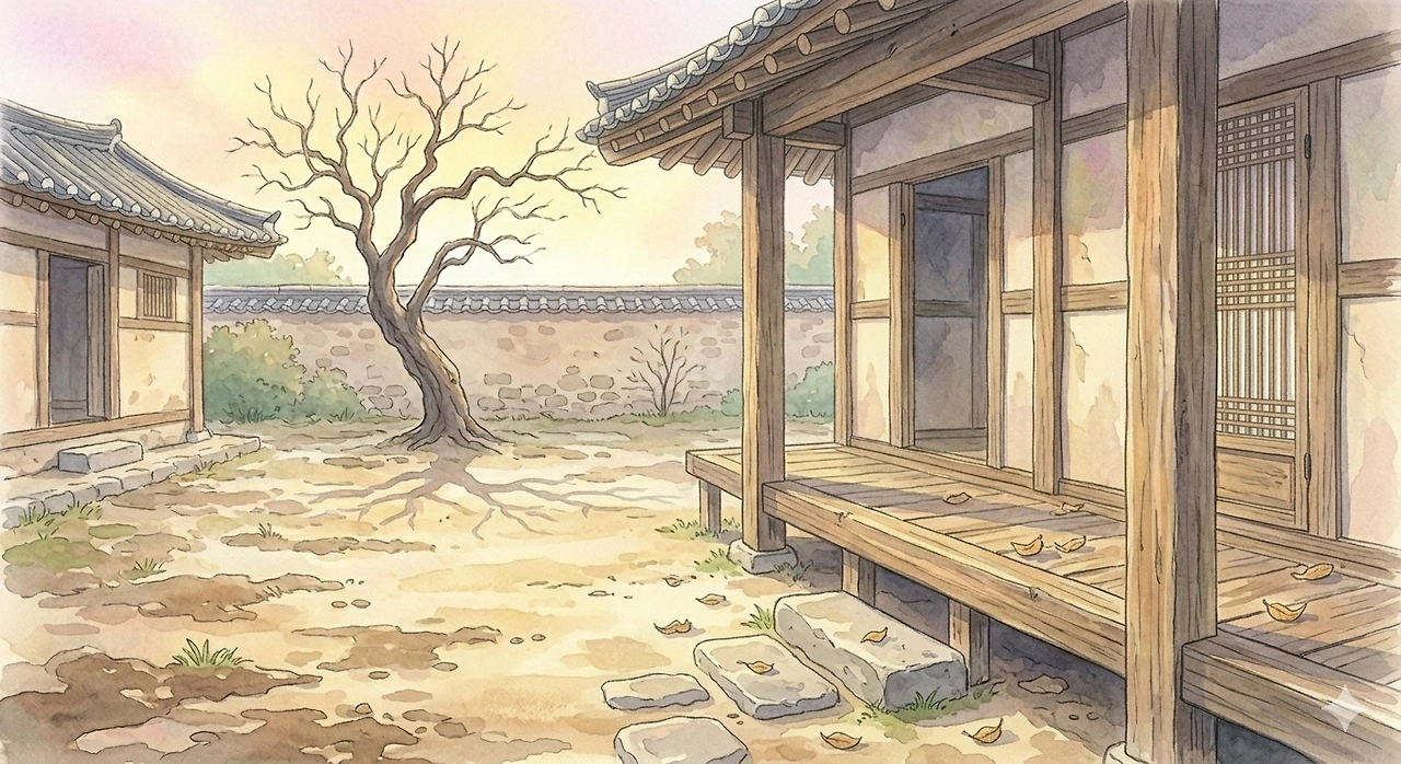 마침내 도착한 그곳엔 하얀 꽃잎을 다 떨구고 앙상해진 배나무 한 그루와 낡은 툇마루가 연이를 기다리고 있었습니다.