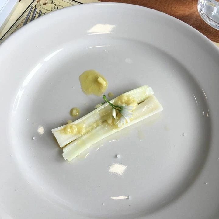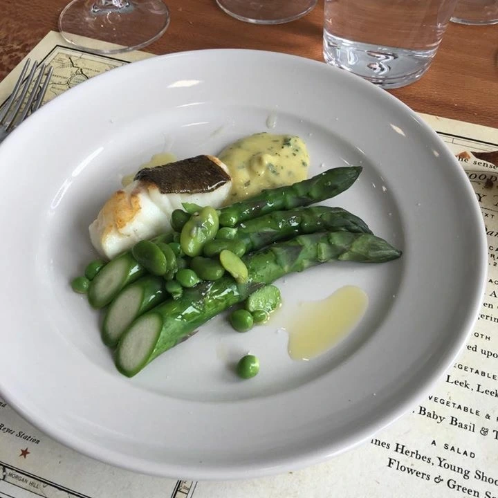 첫 요리는 사과, 프와그라 올린 토스트, 펜넬. 손으로 바로 집어 먹는 한입거리다. 두번째는 맑은 닭육수에 살짝 데친 굴과 사프란을 더한 수프가 나왔다. 그 다음은 비네그렛 소스를 올린 서양대파의 속대와 파꽃. 쌉쌀한 맛에 진한 풍미가 일품이다. 메인은 두툼한 아스파라거스와 푸른콩을 곁들인 넙치 요리. 허브와 어린 새싹과 꽃잎을 올리브오일과 소금으로 토싱한 샐러드로 삭사를 정리한 것이 독특했다. 오렌지 셔벗과 ‘셰파니스’의 자랑인 루버브 갈레트를 디저트로 식사 끝(먹다보니 사진도 못찍고...루버브가 요즘처럼 미국 식탁에 자주 등장하게 된 것도 앨리스 워터스 덕분이란다). 접시 위가 온통 초록색! 이 재료가 원래 이런 맛이었지 하고 새삼 생각할 정도로 깔끔하고 상쾌한 맛이다. 보고 먹는 것만으로 성인병 예방될 것 같은... ^^