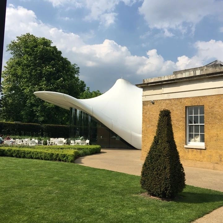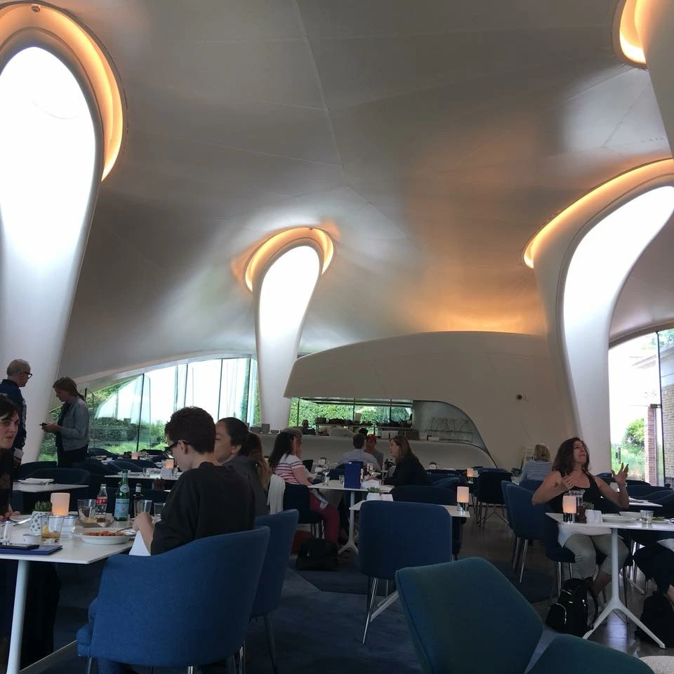 하지만 이곳은 자하 하디드 건축의 매력과 개성을 잘 살린 곳이다. 유리섬유로 너울치는 듯한 장력구조물(tensile structure)인데 페리미터 세 곳이 지면을 만나고 유리 통창이 시원하게 외부를 보여준다. 안에서는 다섯 개의 커다란 기둥이 천장을 지지하는데 윗부분을 둥그런 투명유리로 처리해 자연 채광이 들어와 전체적으로 환하고 상승하는 분위기를 만들어낸다. 공간에 어울리게 가구 역시 유기적 디자인으로 구비한 것이 특징. 흐르듯 유연하고 편안한 공간 덕에 켄싱턴가든과 하이드파크를 산책하고 미술관을 구경한 후 간단한 간식이나 차 한 잔 하기 좋은 곳이다.