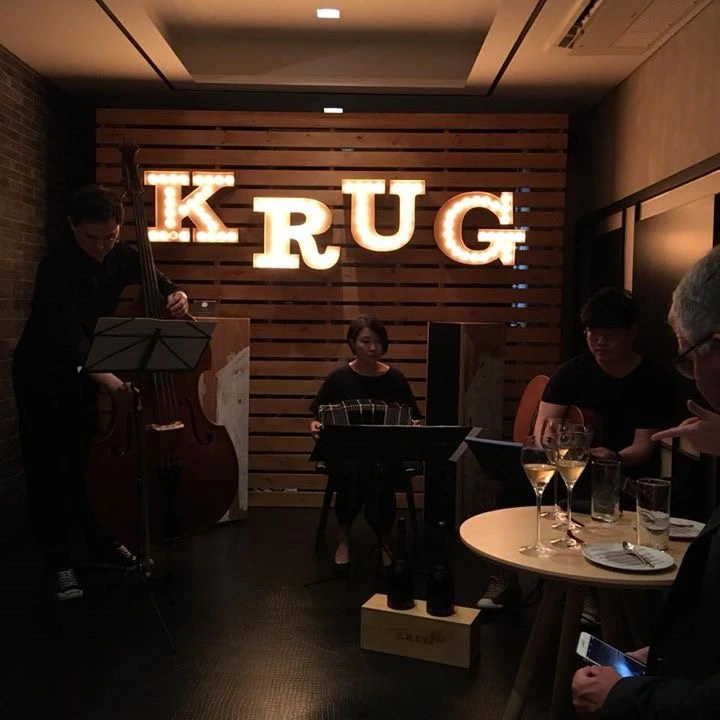 샴페인은 즐거움을 위한 술이다. 뭐, 다른 술도 마찬가지겠지만... 샴페인은 온갖 감각을 자극하는 술. 최고의 샴페인 메종인 ‘크루그(krug)’는 7, 8년 전부터 해마다 특정 식재료를 선정하고 음악과도 매칭하는 행사를 연다. 달걀, 감자 등이 등장했고 지난 해에는 버섯이 주제였는데 올해는 생선이다.