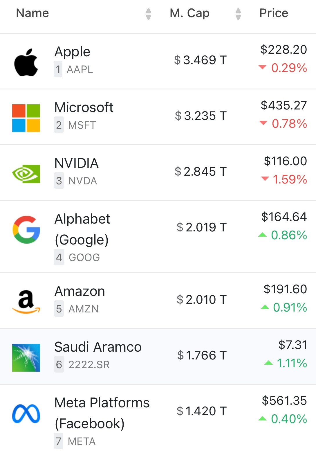 주식을 잘하려면 분석이 정말 중요하다. 전 세계 주식 시총 순위를 살펴보자.(이 글에서는 사우디아라비아 아람코 주식은 제외하고 말하겠다)