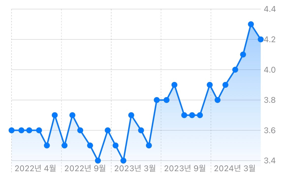 실업률도 아직까지는 정상범위이지만 최근 몇 개월 동안 우상향 추세가 무섭다. 지속적인 모니터링이 필요하다.