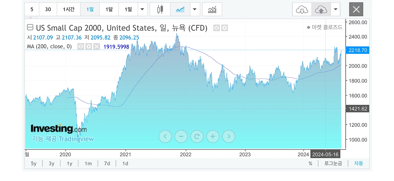이미 나스닥 지수는 신고점을 연일 갱신 중이고, 러셀 2000 지수도 전고점을 향하고 있다. 금리가 인하하게 되면 중소형주로 구성된 러셀 2000 지수도 전고점을 돌파할 것이 확실시된다.