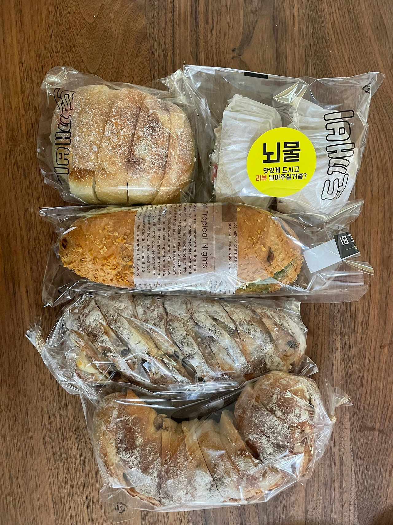 내가 중학생이었을 때 국진이 빵이 크게 유행을 했었다. 빵 안의 씰을 모아 책상이나 사물함에 잔뜩 붙이고선 내가 얼마나 먹었는지(모았는지) 자랑하곤 했었다. 그동안 한국 빵 사업은 화려해져 갔고 그중 파리바게트가 생기기 시작했을 때엔 우리 집도 할머니 댁에서 나온 뒤였기 때문에 우리의 아침은 다시 빵으로 돌아올 수 있었고 다양한 빵의 흐름에 맞게 아침 빵의 종류도 달라지기 시작했었다. 하얀 식빵에서 보다 다양한 크루아상, 바게트로도 아침을 먹었고, 그 곁엔 항상 본마망 쨈과 누텔레 그리고 피넛버터가 올려져 있었다. 때때로 친구들이 우리 집에서 자고 간 적도 있었는데 그때마다 친구들은 우리 집의 아침이 그렇게 맛있었다고 아직도 이야기한다.(나도 아직도 엄마의 빵 아침상이 타르틴보다도 최고다)