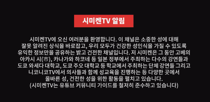호기심 많았던 사춘기 시절, 구성애 선생이 우리 곁에 있었다. 성인이 된 후, 구성애 선생의 기초 이론을 어느 정도 마스터한 이들은 실전 이론을 가르쳐 줄 선생을 찾아 헤맸다. 나침반과 지도 없이 깜깜한 숲 속에서 한참을 방황했다. 2019년, 이제 사람들은 마침내 등장한 시미켄 TV에 환호한다. 물론 이 환호는 전반적으로 그간 시미켄이 AV계에서 써 내려간 역사에 표하는 감사이다. 한편으로, 이 반응은 한국에서 성에 대한 문화가 꽃피우지 못하도록 가로막는 억압을 상기시킨다.