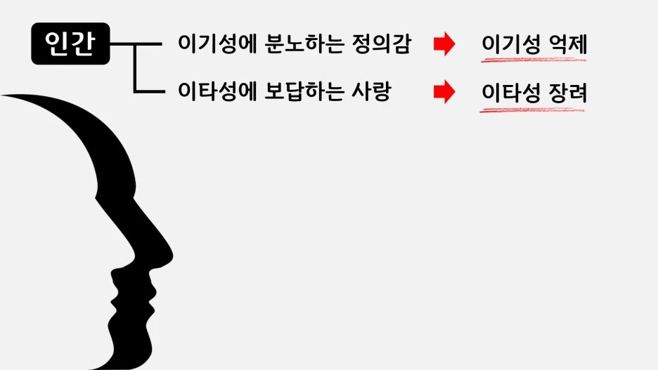 다시 말해 우리가 오래도록 살아남기 위해선 이기적이기만 해서도 안 되며, 이타적이기만 해서는 더더욱 안 된다는 거죠. 이처럼 저자는 이타성이나 이기성 둘 중 하나만이 존재의 본질이라고 여기지 않고, 그 둘의 조화를 통해 인간을 이해하고자 시도한 것입니다.