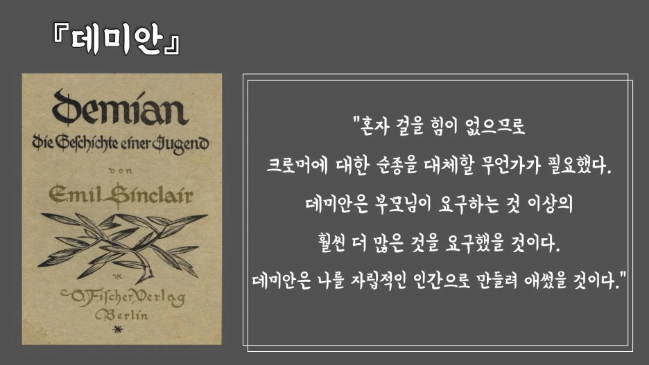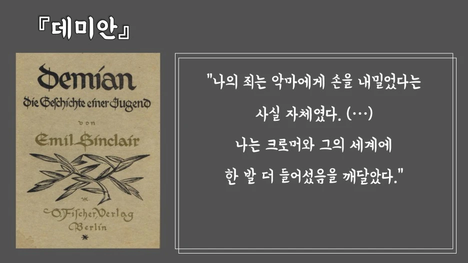 이로써 소설은 싱클레어의 독백을 끝으로 막을 내리죠.