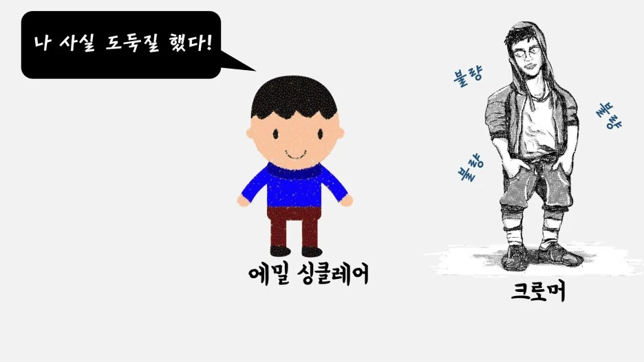 작중 주인공의 이름은 에밀 싱클레어입니다. 그는 독실한 기독교 가정에서 부모님의 따뜻한 사랑을 받으며 자란 평범한 소년이었죠. 그러던 어느 날 싱클레어가 열 번째 생일을 맞이할 무렵 그보다 세 살쯤 많아 보이는 덩치 큰 소년, 크로머가 나타납니다. 한 눈에 보기에도 불량한 크로머는 싱클레어에게 꽤나 위협적인 존재였는데요. 싱클레어는 불량한 크로머에게 잘 보이고 싶었던 나머지 그만 터무니 없는 허풍을 늘어놓습니다.