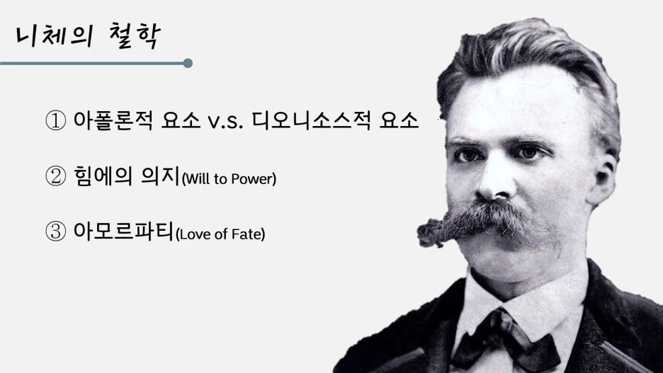 본격적으로 『데미안』을 살펴보기 전에 잠시 소개드릴 철학자가 한 명 있습니다. 바로 니체입니다. 개인적으론 『데미안』을 읽을 때마다 니체의 철학을 떠올리지 않으며 읽기가 힘들 만큼 책 곳곳에서 니체의 흔적을 발견하곤 합니다. 따라서 이번 포스팅에선 니체의 철학을 재료 삼아 『데미안』를 독해해보려 하는데요. 본 포스팅을 이해하기 위해 꼭 알아야 할 니체의 철학 몇 가지를 먼저 간단히 살펴보도록 하겠습니다.