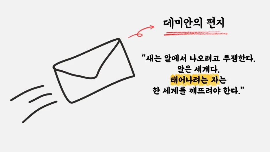소설 『데미안』의 주인공 싱클레어는 그의 수호천사라 할 수 있는 데미안으로부터 다음과 같이 적힌 편지를 받습니다.