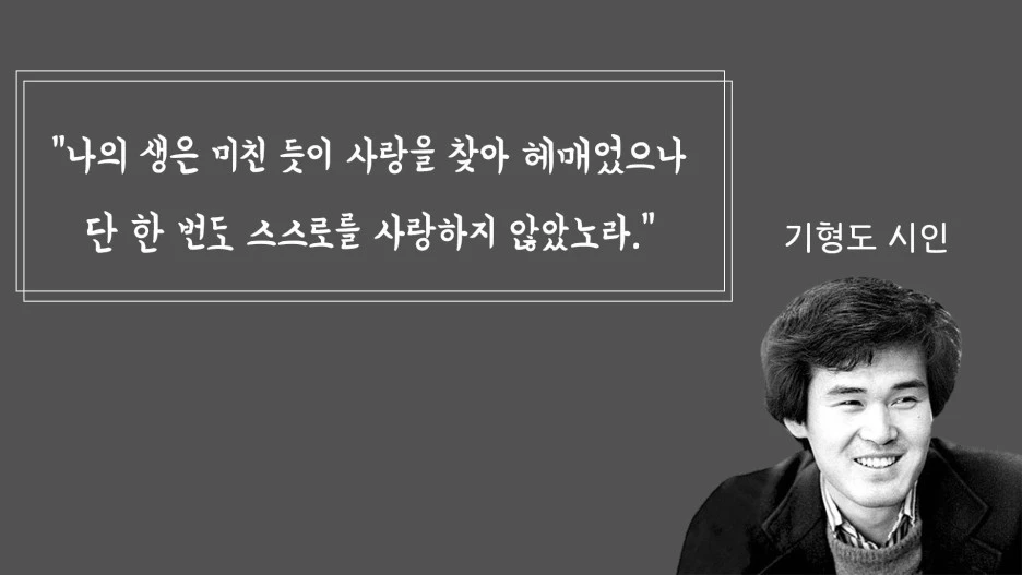 이상으로 『신독』의 내용을 간단히 정리해보았습니다. 저자에 따르면 우리 삶의 진정한 단독자란 위태로운 인심을 좇지 아니하고 오로지 마음 속에 은미한 도심을 따르는 사람입니다. 그리하여 스스로에게 무한한 사랑을 베풀고, 또한 악을 멀리하는 심판자로 거듭나는 거죠. 단독자란 그런 것입니다. 스스로를 사랑하는 동시에 심판할 수 있는, 따라서 만물과의 연결 속에서도 자기 자신을 상실하지 않는 존재 말이죠. 반면 인심을 좇는 사람들은 세상과의 통합 가운데 너무나도 쉽게 휘청거리며 자기 자신을 상실하고 맙니다. 예컨대 준비하던 일이 조금만 삐끗해도 금방 미래에 대한 불안감에 휘청이며, 또한 본인을 향한 타인의 사소한 비난에도 금방 무기력해지고 맙니다. 스스로 자기 자신을 사랑할 줄 아는 능력이 없으니 밖에서 조금만 흔들어도 위태롭게 흔들리는 거죠. 기형도 시인은 다음과 같이 말했습니다.