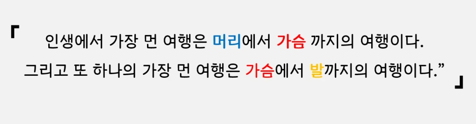 그의 말 대로 머리로만 아는 것, 가슴으로 느끼는 것, 나아가 발로 뛰어 실천하는 것 사이에는 무척이나 커다란 간극이 존재합니다. 하지만 우리는 그 머나먼 여행을 성공할 수 있는 방법을 이미 맹자로부터 배웠습니다. 먼저는 직양을 통해 선한 본성을 지키고, 또한 집의를 통해 선한 행동을 지속적으로 반복하는 거죠. 그리하여 마음이 곧 행동이며 행동이 곧 마음인 경지에 이르면 마침내 우리의 머리, 가슴, 발도 비로소 하나 같은 셋, 혹은 셋과 같은 하나가 될 수 있는 것이 아닐까요? 다시 말해 우리는 머리로만 아는 현학주의를 떨쳐내고, 가슴으로 느낄 줄만 아는 감상주의를 벗어나며, 또한 발만 앞서는 속도주의를 극복하여, 마침내 알고 느끼고 행하는 것을 하나로 여기는 대장부가 되어야 한다는 말이죠. 아무쪼록 우리 내면의 양심을 잘 단속하여 욕심에 굴복 당하지 않는 여러분의 호연지기를 응원하며 글을 마칩니다.