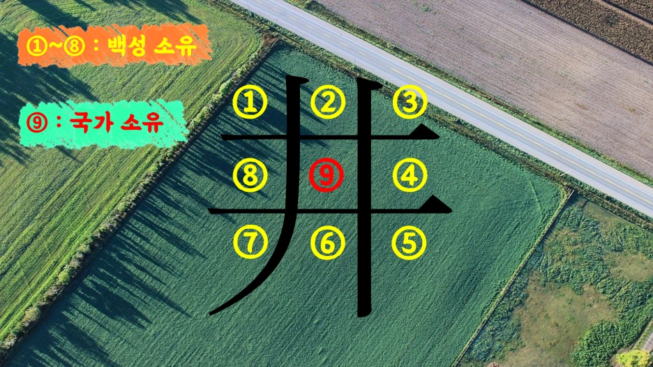 맹자는 실제로 백성들을 위한 구체적인 경제 정책에도 관심이 많았습니다. 그 중 하나가 바로 ‘정전제’인데요. 이는 ‘우물 정’ 모양으로 밭을 나눠서 백성들에게 나눠주는 것을 뜻합니다. 즉 밭을 9등분 하여 이 중 여덟 덩어리를 백성들에게 나눠주고, 국가는 딱 한 덩어리만 소유하는 거죠. 백성들은 자신들이 할당 받은 밭에서 경작한 생산물을 오롯이 독차지 할 수 있으며, 대신 국가 소유의 밭을 경작하여 얻은 생산물을 국가에 헌납해야 합니다.
