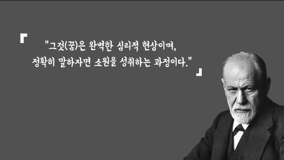 모든 인간은 욕망의 좌절을 경험하며 살아갑니다. 때로는 자신이 바라는 것이 사회 도덕에 반하는 것이어서 좌절되기도 하고요, 혹은 가족의 반대로, 혹은 종교적인 이유로, 혹은 자기 자신이 자발적으로 욕망을 포기하기도 하죠. 하지만 프로이트에 따르면 우리가 끝내 실현하지 못한 욕망은 우리 마음 깊은 곳에 저장된다고 합니다. 비록 우리의 의식은 과거의 욕망을 잊었다 할 지라도 우리 내면의 깊은 무의식 속에는 억압된 욕망이 차곡차곡 쌓여 있다는 이야기이죠. 프로이트는 꿈을 그 증거로 제시합니다. 억압된 욕망을 실현하길 바라는 인간의 무의식적 바람이 인간으로 하여금 꿈을 꾸게 만든다는 설명이죠. 그는 다음과 같이 말합니다.