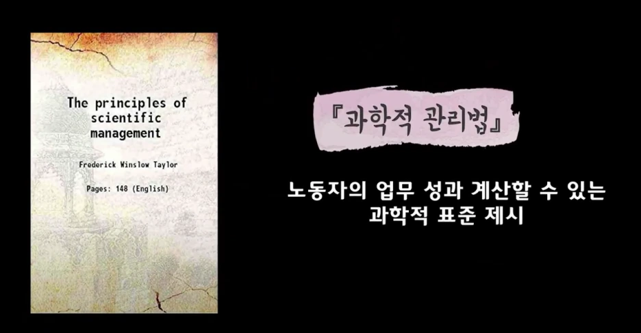 이윽고 농장에서 쫓겨난 흑인들은 새로운 꿈을 안고 북쪽으로 이동하기 시작합니다. 농업이 발달한 남부와는 달리 제조업 중심의 북부에서는 일자리를 찾을 수 있을 것이라 희망을 걸었던 거죠. 하지만 북부도 사정은 크게 다르지 않았습니다. 1950년대 중반부터 점차 자동화로 물들기 시작한 미국 제조업은 1953년부터 1962년까지 무려 160만여 명의 노동자들이 실직할 만큼 상황이 여의치 않았죠. 즉 남부와 북부 모두 기술 혁신과 더불어 대규모 실업이 발생하기 시작한 것입니다. 이에 대해 제레미 리프킨은 기술 개발 이면에 존재하는 보다 본질적인 원인을 지적합니다. 바로 효율만능주의입니다. 이는 쉽게 말해 노동의 효율을 최우선으로 중시하는 기업 문화를 뜻하죠. 그러한 기업 문화에 기여한 대표적 인물은 프레드릭 테일러입니다. 테일러의 저서 『과학적 관리법』은 기업가들로 하여금 노동자의 업무 성과를 손쉽게 계산할 수 있는 과학적 표준을 제시하죠.