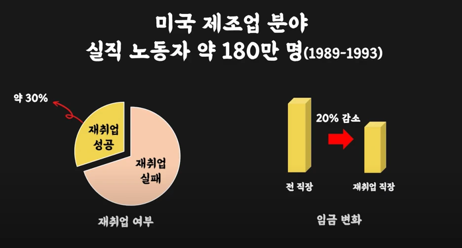 이에 대해 일부 학자들은 실업자들을 다른 직군에서 흡수할 수 있다고 주장하기도 했지만 실상 통계를 살펴보면 재취업에 성공한 노동자의 수도 현저히 적을뿐더러, 재취업에 성공한다 할지라도 대폭 삭감된 임금으로 계약하는 경우가 허다하다고 합니다.