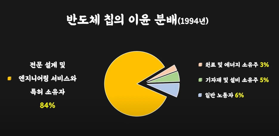 이어서 두번째 부작용은 빈익빈부익부의 심화입니다. 그 이유는 비숙련 노동자의 노동 가치는 갈수록 떨어지는 반면 엘리트 집단이 가진 지적 능력의 가치는 큰 폭으로 상승할 것이라는 논리이죠. 제레미 리프킨은 그 근거로 반도체 칩의 이윤이 어떻게 분배되는지 설명합니다. 리프킨에 따르면 통상적으로 반도체 칩의 이윤이 분배되는 비율은 원료 및 에너지의 소유주가 3%, 기자재 및 설비 소유주가 5%, 일반 노동자는 6%만을 차지한다고 합니다. 나머지 이윤, 즉 84%에 달하는 비율은 전문화된 설계 및 엔지니어링 서비스의 소유자에게 돌아간다는 이야기이죠.