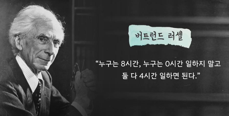 리프킨이 제시하는 첫번째 대안은 노동 공유 운동입니다. 이는 말 그대로 한 사람의 노동을 여럿이 공유하자는 것으로 이에 대해 버트런드 러셀(Bertrand Arthur Russell)은 다음과 같이 말했습니다.